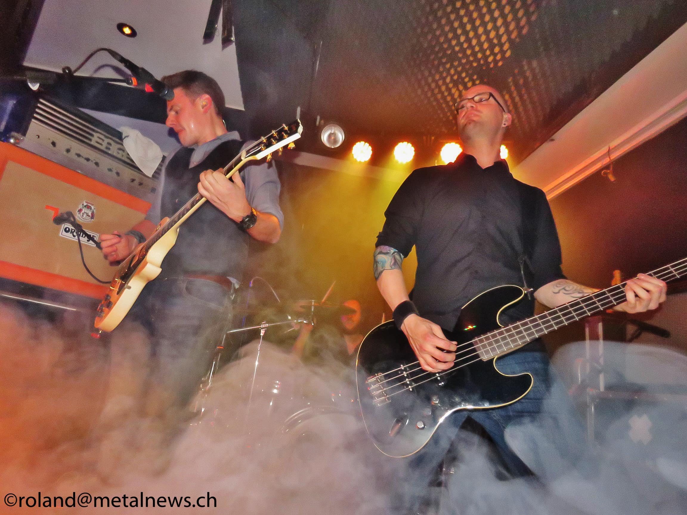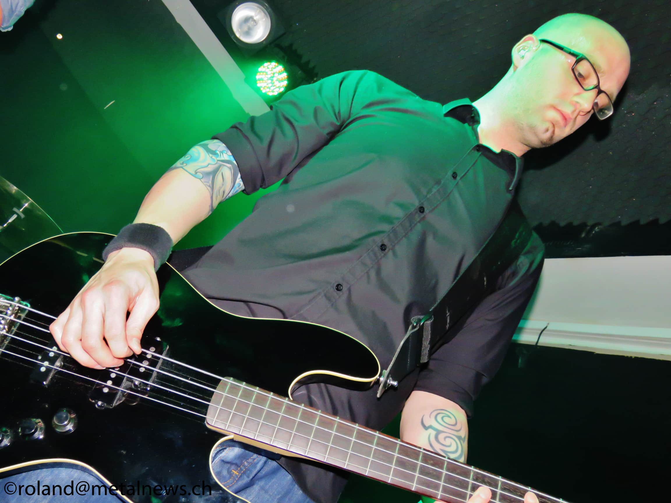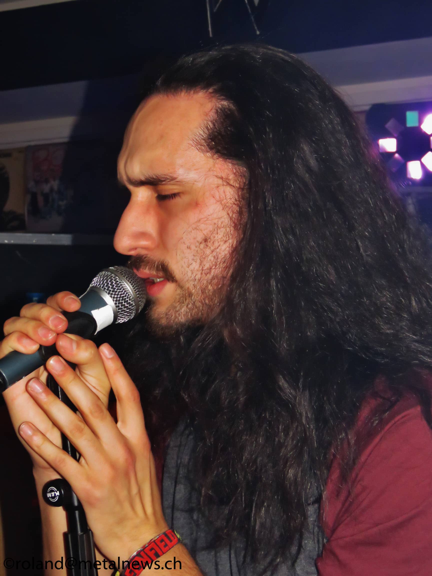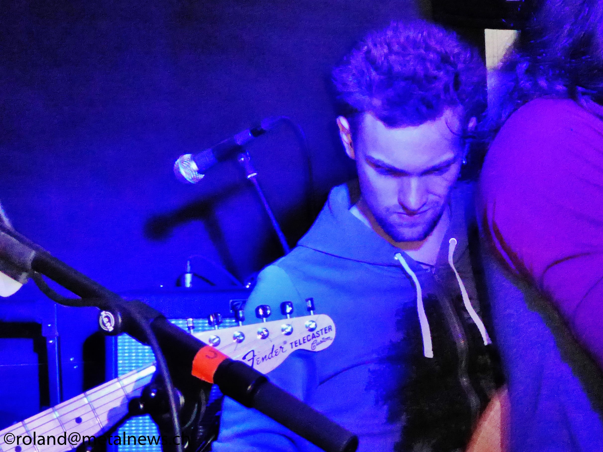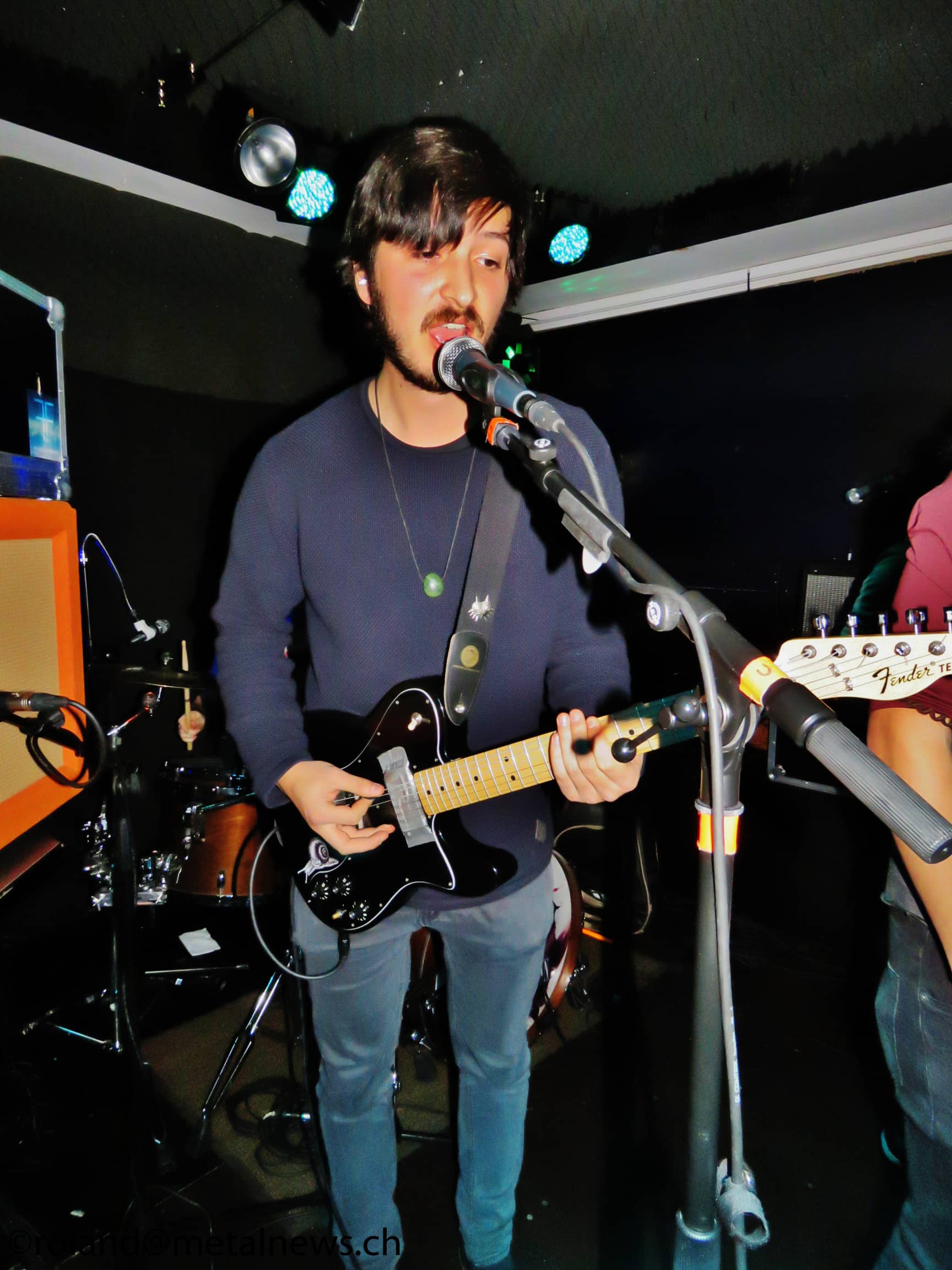 Der Soundcheck geht zügig über die Bühne und dann beginnt auch schon die erste Band zu spielen. Es ist dies die Zürcher Progressive Rock Band OPEN EYED, bestehend aus vier Mitgliedern. Optisch auffällig an ihrem Gig ist dass der Sänger oftmals seine Augen geschlossen hält, bedingt durch die Bühnenbeleuchtung. Aus meiner Sicht bietet die Band eine gute Show, sie hält sich aber merklich zurück was die Animation des Publikums zum Mitmachen anbelangt, dennoch fordern die Zuschauer eine Zugabe welche OPEN EYED bereitwillig in Form des Songs „Broken Bells“ gibt. Diese Zugabe sowie die Songs „Trustitude“ und „Tormenta“ kann man sich auf meinen Youtube-Channel „JudR666“ zu Gemüte führen.