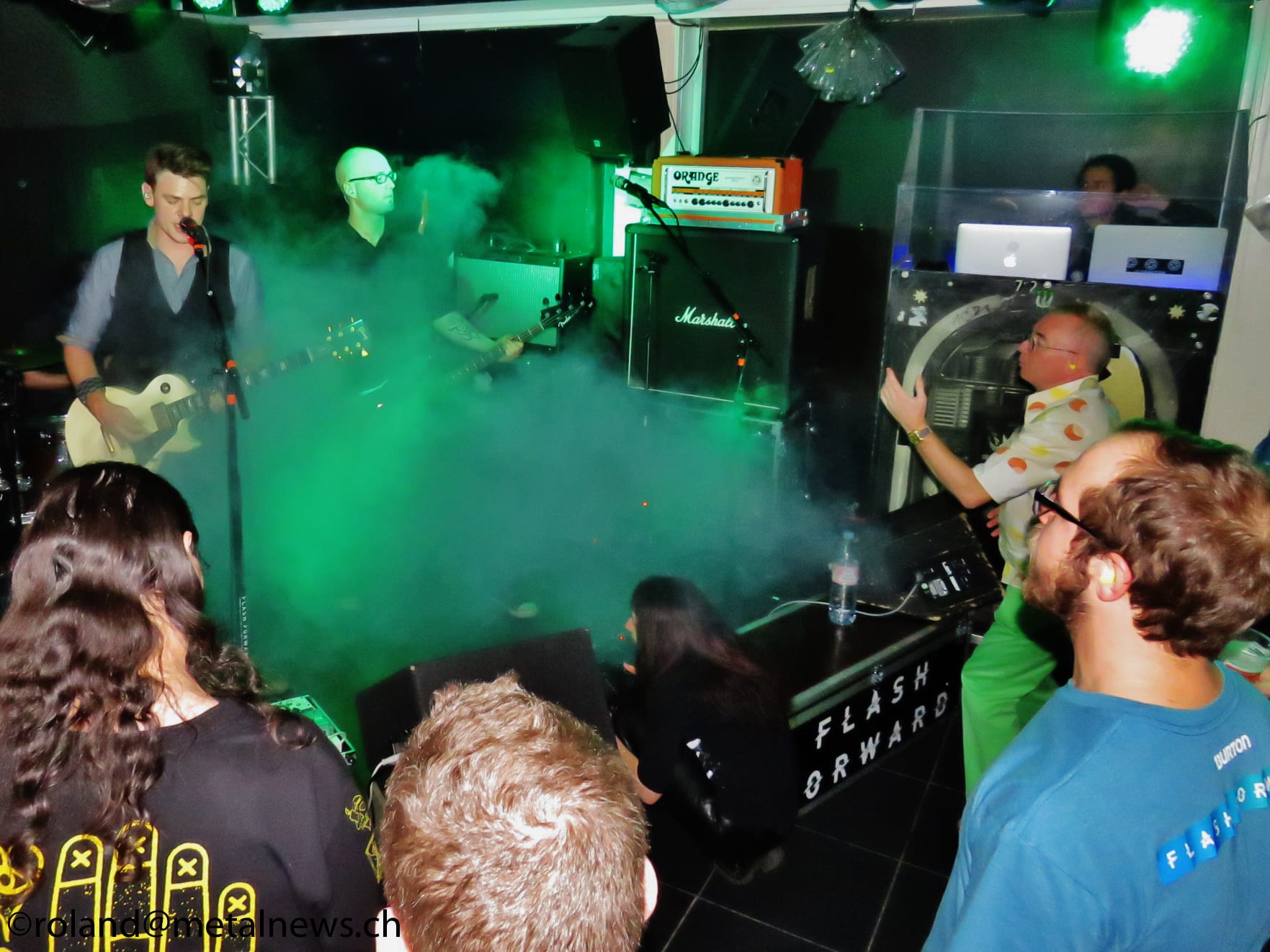 Nach einer kurzen Pause beginnt die zweite Band des Abends zu performen. Die aus Wesel, Nordrhein-Westfalen, stammende Truppe FLASH FORWARD besteht ebenfalls aus vier Mitgliedern und gibt mehrstimmigen Alternative Rock zum Besten. Die vier Jungs legen sich mächtig ins Zeug und verbreiten eine super Stimmung. Sie ziehen die Zuschauer von Beginn weg in ihren Bann und dieses macht bereitwillig mit, beim Song „Are You Out There“ entsteht sogar ein kleiner Circle Pit. Der Memphis Bar wird zudem eine doppelte Ehre zuteil: Einerseits tritt FLASH FORWARD zum ersten Mal ausserhalb Deutschlands auf, dieser Gig stellt also ihre Auslandspremiere dar, und andererseits performen sie den Song „Control“, welcher Mitte März 2016 auf ihrem dritten Album „Who We Are“ erscheinen wird, zum allerersten Mal live. Diese Live Premiere von „Control“ sowie die Songs „When The Lights Go Down“, „Far Away From Home“, „Irresistible“, „Hold On“, „Are You Out There“ und „One More Time“ kann man sich ebenfalls auf meinem Youtube-Channel anschauen.