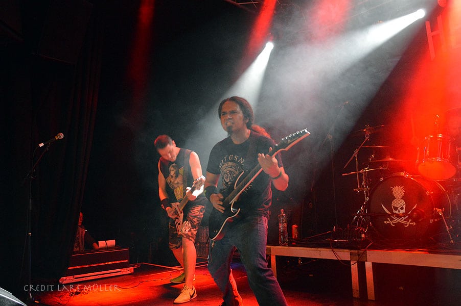 Na gut lassen wir das und sehen was die Herren so drauf haben. Sehr Energiegeladen, fingen die Herren an. Allen voran Sänger Roman Wettstein. Sein Auftreten errinnerte mich eher an eine Hardcore Band wie HATEBREED. Auch vom Gesang her, kategorisierte ich diese ein bisschen mehr ins Genre Hardcore. Das heisst nicht, dass dies schlecht sei, sondern eher ungewohnt für Thrash Metal. Mir persönlich gefiel dies sehr gut. Auch die Bassistin Sonja Traussing, konnte zeigen was sie auf dem Kasten hat.