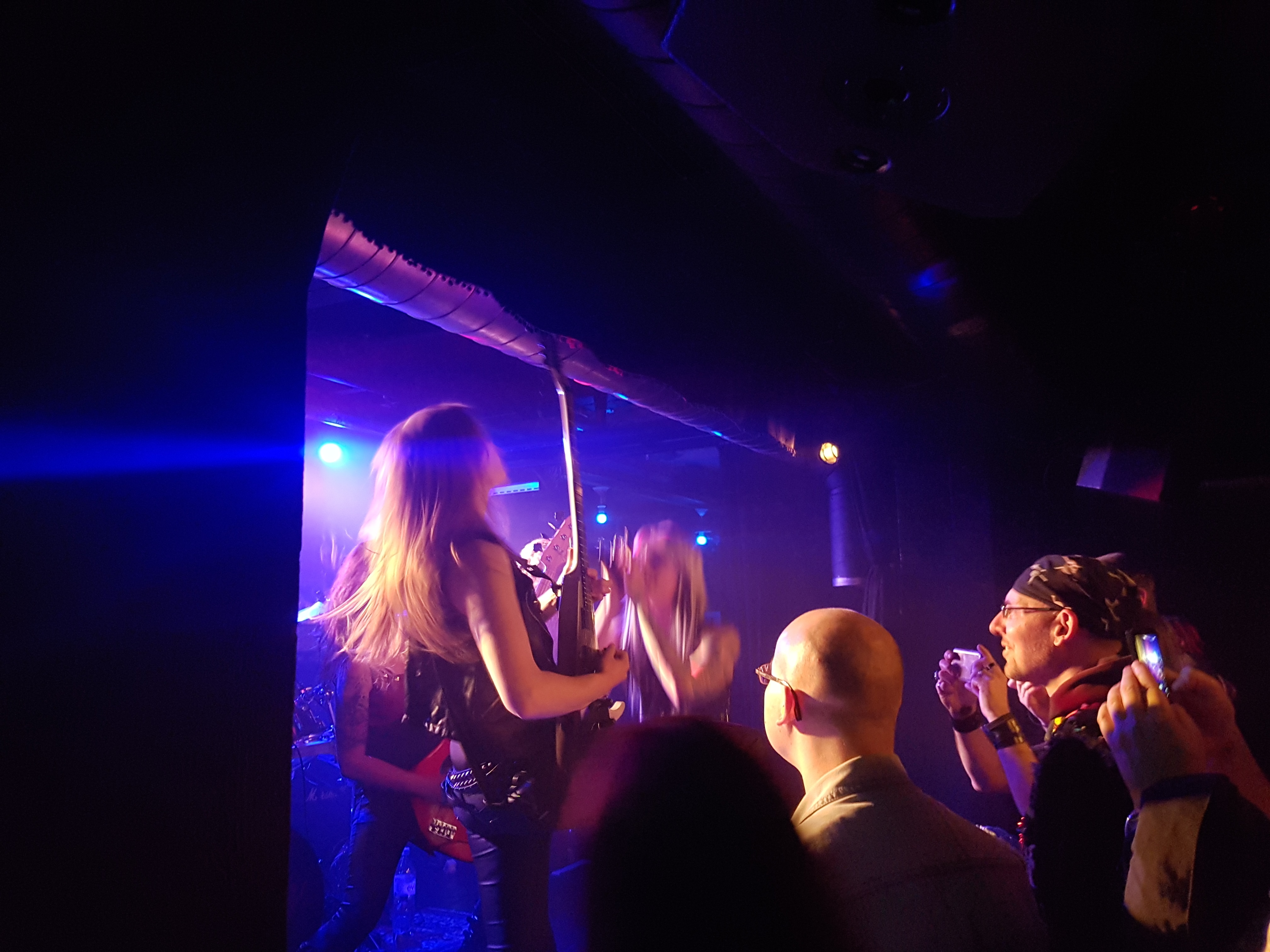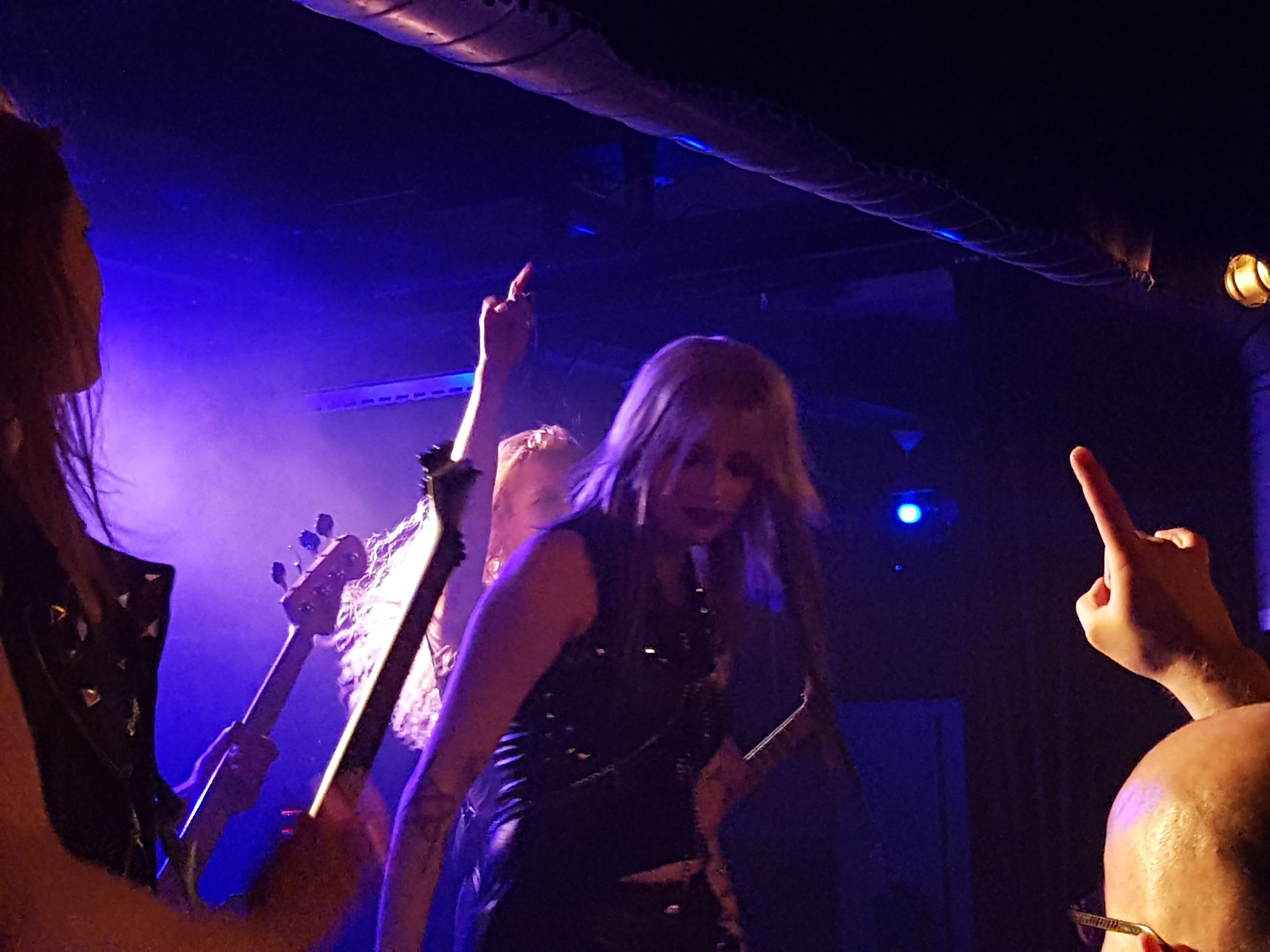 Auch wenn ich wusste, was mich erwarten kann, bin ich erneut einfach Sprachlos wenn die Sängerin Seraina zwischendurch Scream/Growl Vocals einbaut. Das ist einfach unglaublich. Vorrallem wenn man überhaupt nicht damit rechnet. Die Hexen erfinden Heavy Metal fast neu mit der Sonderheit des Growls. Wie man das erwarten kann, spielen sie sehr souverän. Da Seraina mal das Gefühl hatte ihren Kameradinnen Romana, Alea und Jay Platz zu gönnen, machte sie einen kurzen Ausflug zum Pöbel hinunter. Den anderen gefiel der Platz auf der Bühne. Die Drummerin Lala hatte ohnehin genug Platz.