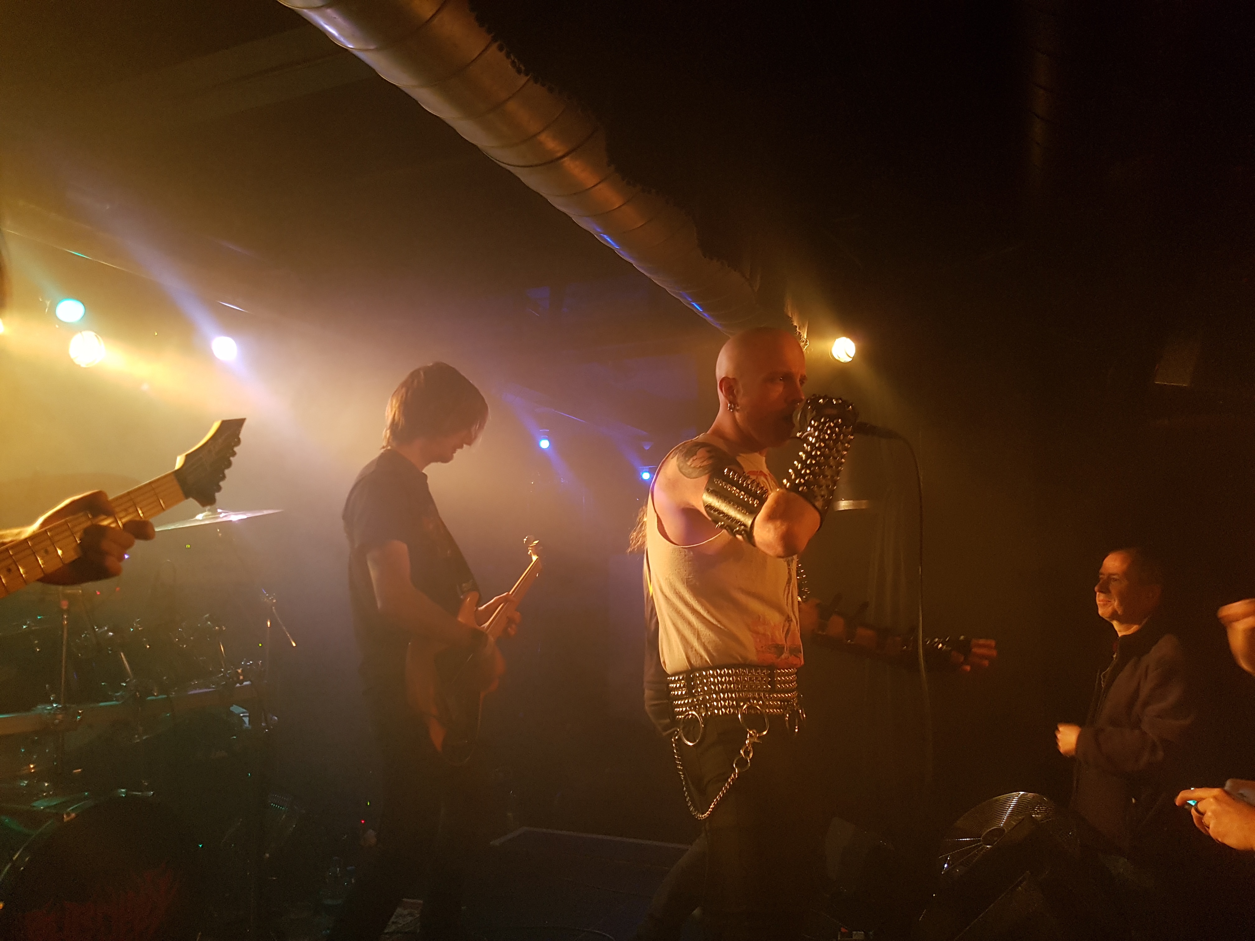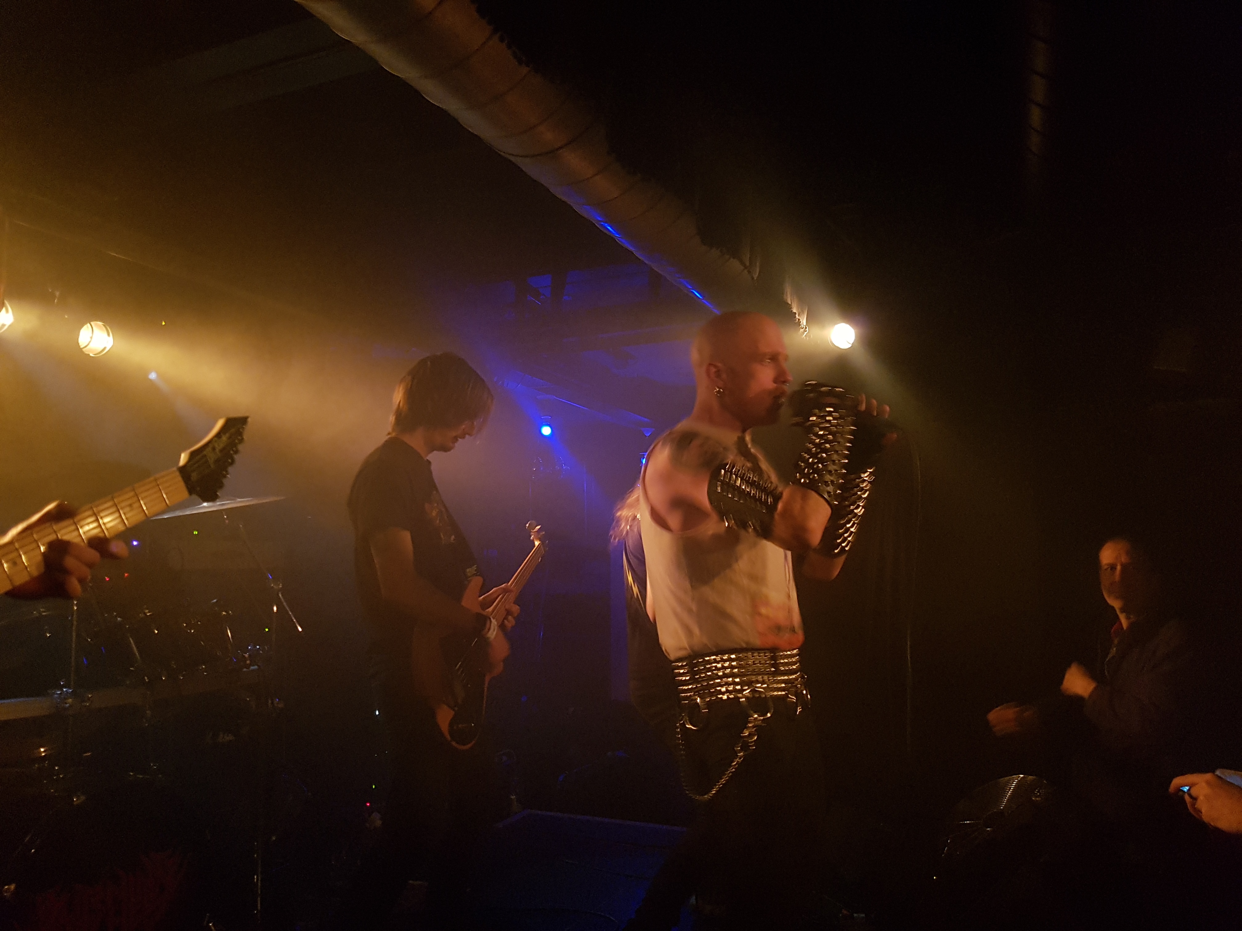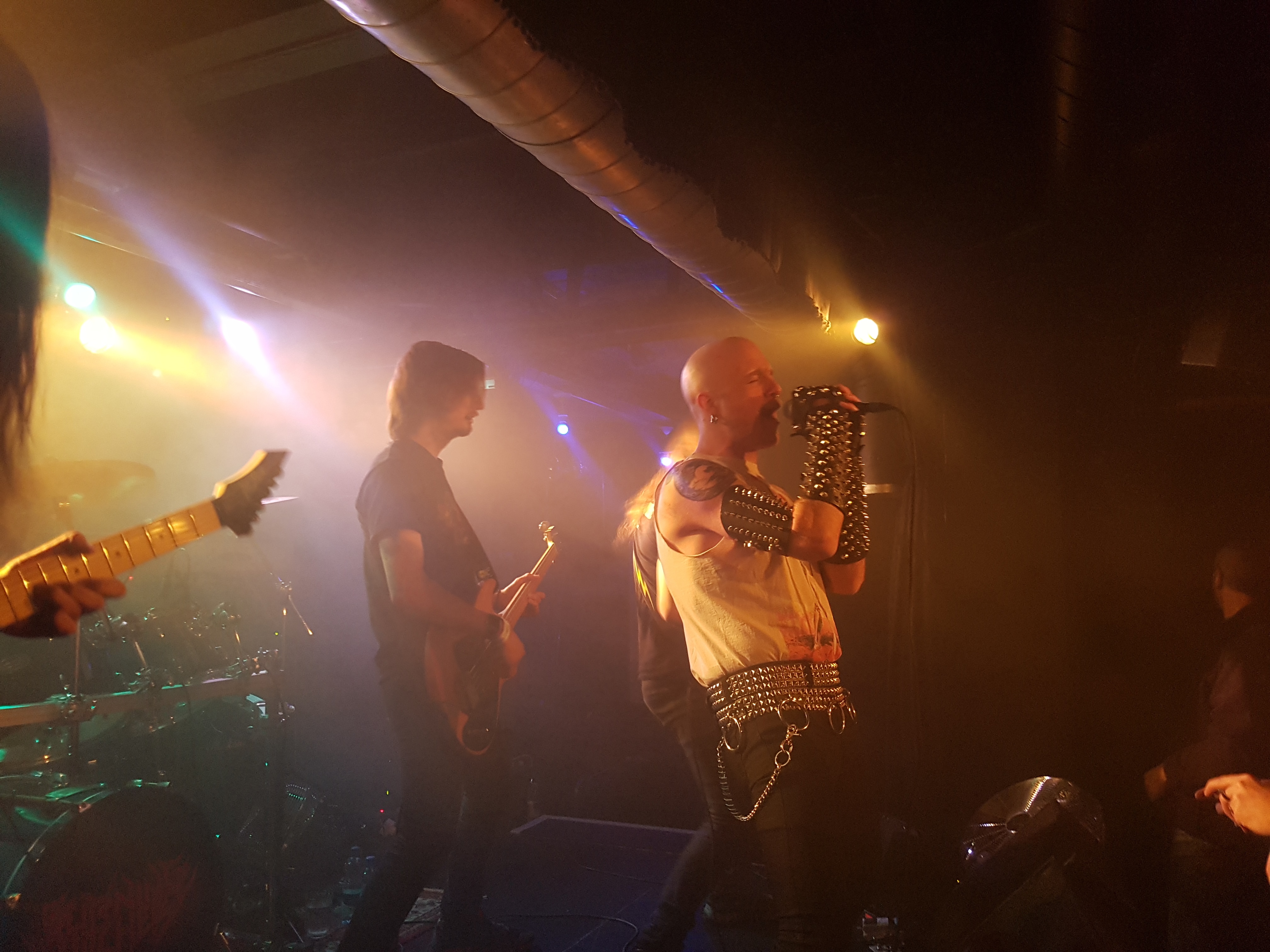 Am aufälligsten hier, war wohl der Sänger Jake Rogers. Nieten wohin man sieht. An den unter wie oberarmen, hatte er Nietenbänder montiert und an den Händen Nieten Handschuhe. Auch der Nieten Gürtel durfte nicht fehlen. Mit solch Nieten Montage, bin ich mir eigentlich nur von Black Metal Fans gewöhnt. Beim genauen zuhören, war das allerdings Heavy Metal mit Power Metal Einflüsse. Warum müssen Vorbands in dem Jahr so stark sein? Da kann man sich ja nicht mal erholen bevor die anderen 2 Bands kommen. Ich finde das klasse, dass Support Bands so dermasen stark auftreten, da müssen sich die grösseren Bands immer etwas einfallen lassen, dass der Headlinerstatus gerechtfertigt ist. Mit enormer Power rockten die Amis die Bühne. Verdammt! Wieder eine Band, die ich mein repetoir aufnehmen muss. Als Jake den lezten Song “ The Revenant King “ ankündigte, merkte man wie seine Stimme ihn allmählich verliess. Er war recht heiser. Hoffentlich beeinträchtigt das nicht den Schlussspurt.