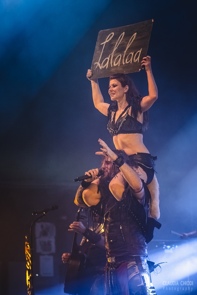 Na dann los und feiern mit FEUERSCHWANZ auf ihr 15-jähriges Jubiläum! Auch sie sehe ich zum ersten Mal in einer Halle, auch ausserhalb des MPS Festival. Definitiv nicht von ungefähr sind sie mit den Mittelalter Folk Comedy Rock (Metal) bekannt geworden. Das merkt man auch heute. Und ganz ehrlich, eine Tänzerin Namens Mieze und sie, phuh! – phänomenal!