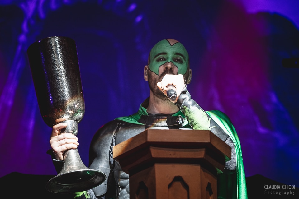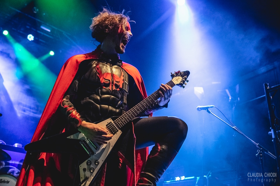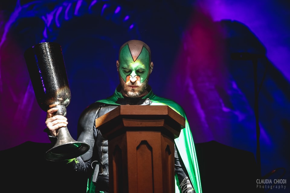 Die deutsche Power / Melo-Death Metal Band eröffnet den heutigen Abend. In Heldenuniform und Masken und in diesem Stil spielen sie los und ich nur: „Oh je, das wird wirklich feuchtfröhlich!“