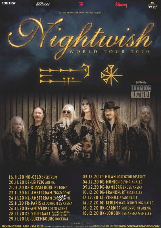 NIGHTWISH kündigen stolz ihre Rückkehr nach Europa während ihrer kommenden Welttournee in 2020 an! Die Band hat bereits eine Show in Amsterdam angekündigt – für die innerhalb weniger Tage schon über 15,000 Tickets verkauft wurden – gefolgt von einer zusätzlichen Show in derselben Venue, Shows in Russland, Weißrussland und der Ukraine. Die für ihr einzigartiges Songwriting, grandiosen Bühnen Designs und Pyro-Effekte berühmt-berüchtigten finnischen Symphonic Metal Helden von NIGHTWISH versprechen, ihr Publikum erneut auf eine spektakuläre audiovisuelle Reise zu entführen.