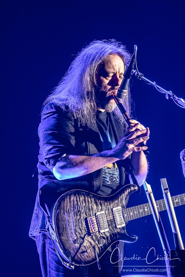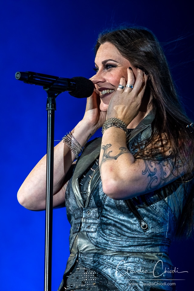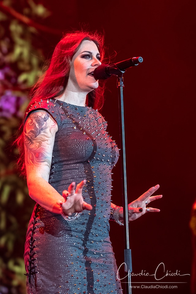 Nach einem ein minütigen Countdown auf der riesigen LED Wand, welche als Hintergrund dient, eröffnet Troy Donockley das Konzert. Mit Low Whistle und Uilleann Pipe erzeugt er schon im Intro erste Gänsehaut Momente. Überhaupt ist die ganze Show auf den Punkt inszeniert, auf der LED Wand und auf einigen Bühnenelementen werden zu den jeweiligen Songs passende Videos und Grafiken eingespielt und scheinbar ganze Welten erschaffen. Wie Eingangs bereits erwähnt, wird dies noch mit weiteren Effekten wie Feuerwerk und Nebel untermalt. Auf kleineren Leinwänden kann man live Kamerabilder sehen, damit auch die hinteren Plätze nicht zu kurz kommen. Dass die Musiker ihre Instrumente und Floor ihre Stimme meisterlich beherrschen ist wohl allgemein bekannt, und wird an diesem Abend auch unter Beweis gestellt. Für zwei Stunden erlebe ich eine Reise durch Zeit und Raum, einfach gigantisch.