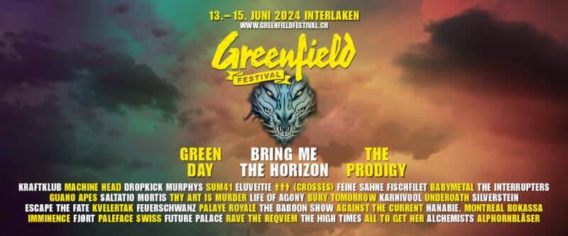 Die weiteren Headliner THE PRODIGY und GREEN DAY, sowie viele bekannte Bands und Künstler wie KRAFTKLUB, MACHINE HEAD, DROPKICK MURPHYS, SUM41, FEINE SAHNE FISCHFILET, GUANO APES oder ††† (CROSSES), stehen auch schon in den Startlöchern und freuen sich, den Startschuss der Festival-Saison auf den grossen Bühnen des Greenfield Festivals zu geben.
