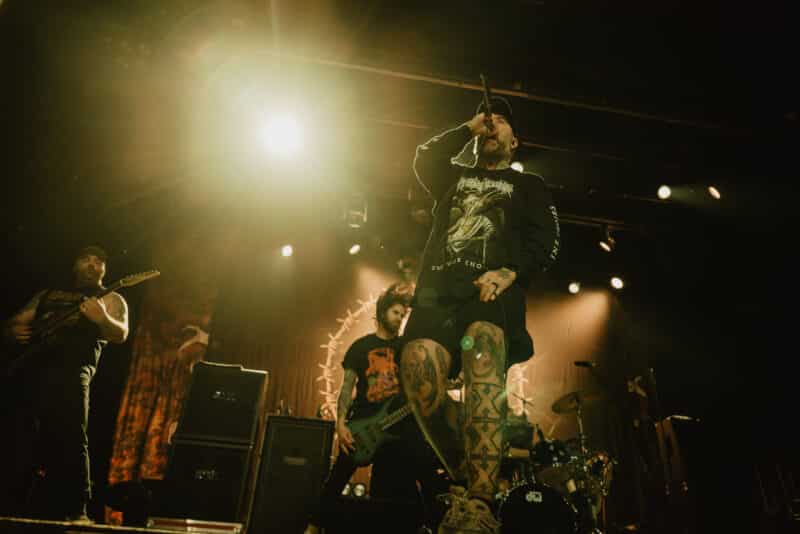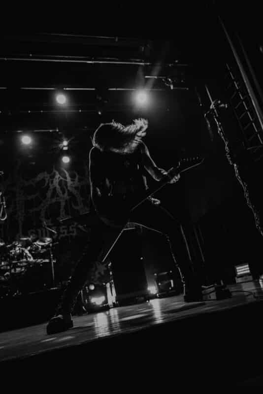 PALEFACE SWISS wollen starten, jedoch müssen wir uns wegen eines technischen Problems noch ein wenig gedulden, bis das Dojo im X-Tra eröffnet wird. Als das Licht ausgeht und das Intro erklingt, vergeht jedoch keine Sekunde, und pünktlich zum ersten Bassdrum-Schlag fliegt der pit-eröffnende Bierbecher quer durch den Raum und startet das Gemoshe. Die Crowd ist jetzt in Feierlaune. Das letzte Mal, als Paleface in Zürich aufgetreten sind, war – wie eingangs schon erwähnt – im Keller der Ebrietas Metal Bar. Nun hat Zelli das ausverkaufte X-Tra fest im Griff und bringt mit einem schelmischen „Fanged ah Seckle Züri“ Bewegung in den Raum. Der Kommentar einer meiner Stehplatznachbarn, dass hier einer der besten Frontmänner der Welt gerade die Leute in seinen Bann zieht, stösst auf reine Zustimmung. Während „River of Sorrows“ kommen inzwischen die ersten Crowdsurfer ins Spiel und bringen die Securities am Bühnenrand ins Schwitzen. Und holy hell, ist dieses Lied gut. Bitte einen Swiss Music Award für diesen Song, merci. PALEFACE SWISS liefert weiterhin eine grandiose Show und zeigt, warum das Upgrade vom Dynamo ins X-Tra mehr als verdient ist. Mit ihrer letzten Single „Love Burns“ verabschiedet sich der Grund für die Löcher im Schweizer Käse von der Bühne und lässt das Publikum noch einmal in die Verantwortung des Mitsingens treten.