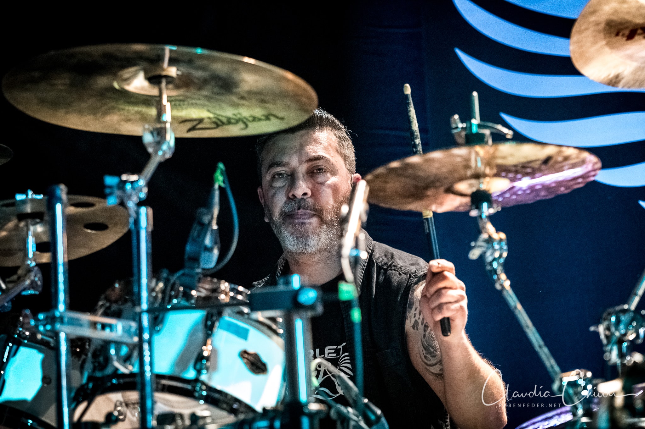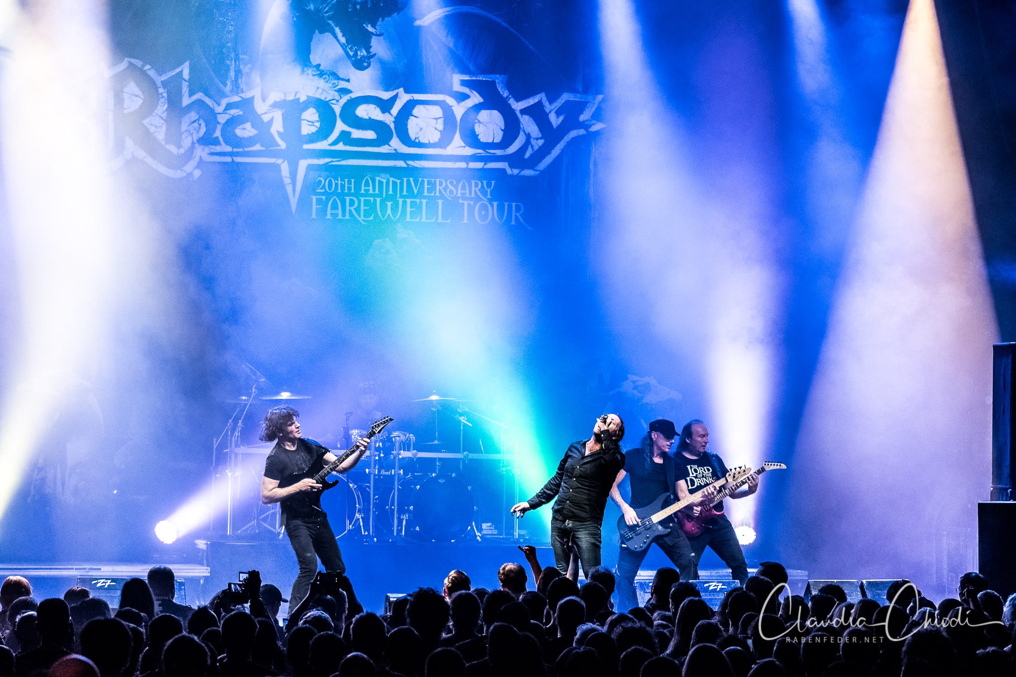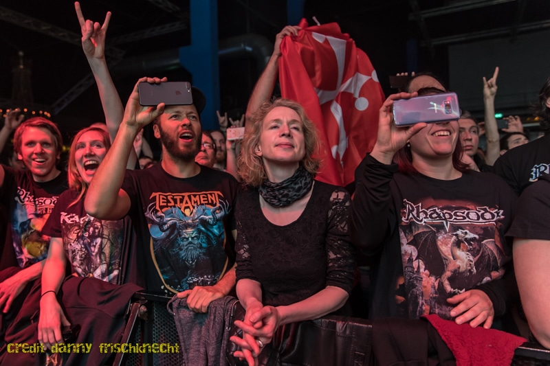 Gross im Rampenlicht stand natürlich RHAPSODY. Nicht allein weil diese Headliner waren. Anlässlich zum 20 Jährigem Jubiläum des Albums „Symphony of Enchanted Lands“ beschlossen die ehemaligen Mitglieder Luca Turilli (Gitarre, 1993-2011), Fabio Lione (Vocals, 1997-2016), Dominique Leurquin (Gitarre, 2000-2011), Patrice Guers (Bass, 2001, ab 2006 fest – 2011) und Alex Holzwarth (Drums, 2000-2016) eine Reunion durch Europa zu vollziehen.