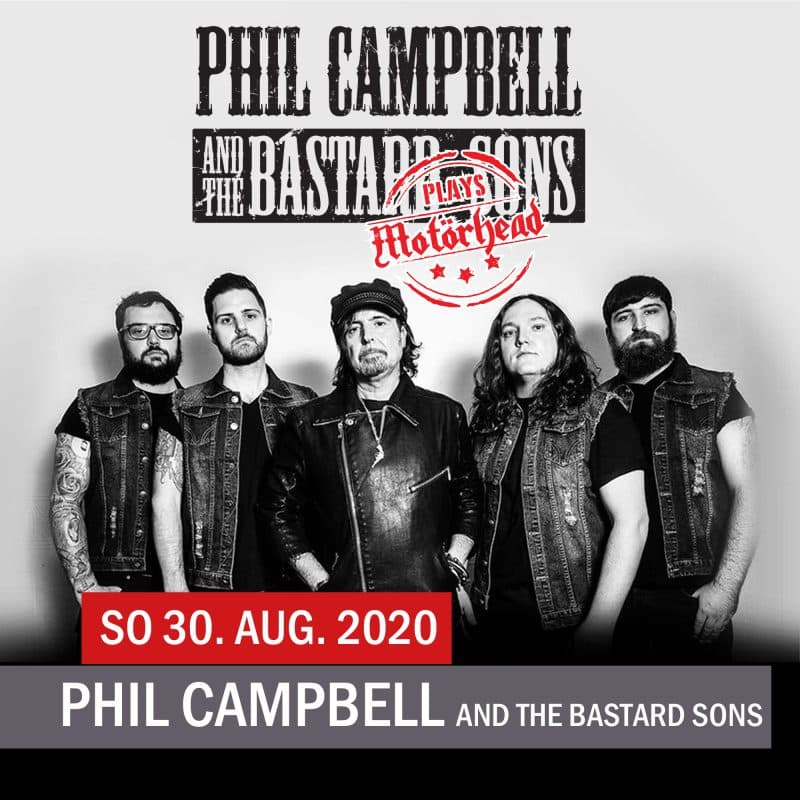 Mit dabei in Aarburg ist auch die Motörhead- Legende Phil Campbell. Zusammen mit seinen drei Söhnen Todd, Dane und Tyla sowie dem charismatischen Sänger Neil Starr bilden sie die Band Phil Campbell and the Bastard Sons. Speziell für das Riverside Open Air spielt die Band ein exklusives Motörhead Set. Phil Campbell and the Bastard Sons sind am 30. August 2020 live und nur ein Konzert in der Schweiz.