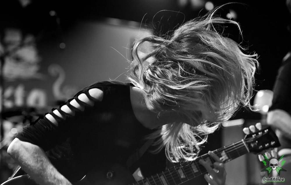 Die Drummerin Emlee Johansson musste nach zwei Songs ihr Handgelenk einbinden lassen – wahrscheinlich eine Begleiterscheinung der vielen Live Auftritte welche THUNDERMOTHER in diesem Jahr absolviert hatten.