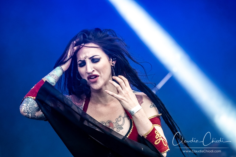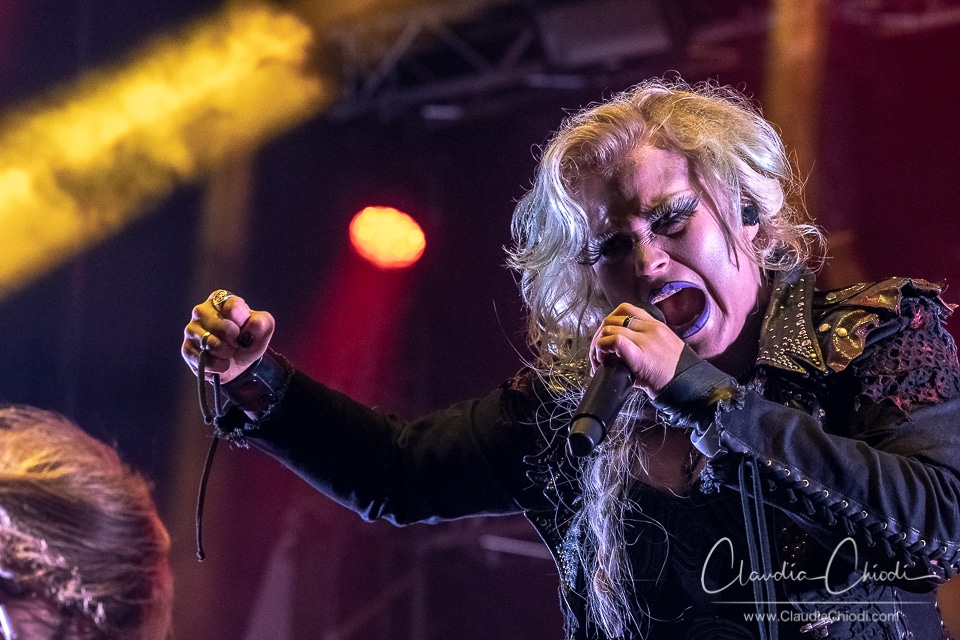 Auf die nächste Band des Tages war ich besonders gespannt, hatte ich doch bisher noch nichts von ihr gehört. Allerdings hatten einige Kollegen schon die ganze Zeit geschwärmt, was für eine tolle Show uns erwarten würde. Ich wurde nicht enttäuscht. ELEINE ist ein Fest für die Sinne mit Power Metal, schnellen Drums, wilden Gitarrenriffs und dazu den sinnlich-entrückten Tanz von Sängerin Madeleine. Wunderschön anzusehen, spannend anzuhören und dennoch überzeugten sie mich nicht vollständig. Dazu war der Gesang von Madeleine für meinen Geschmack einen Ticken zu hoch und harmonierte zu wenig mit ihren Kollegen.