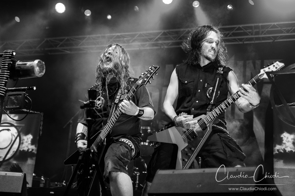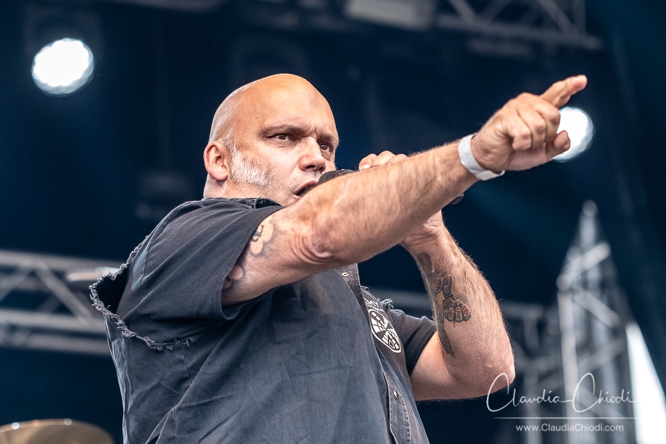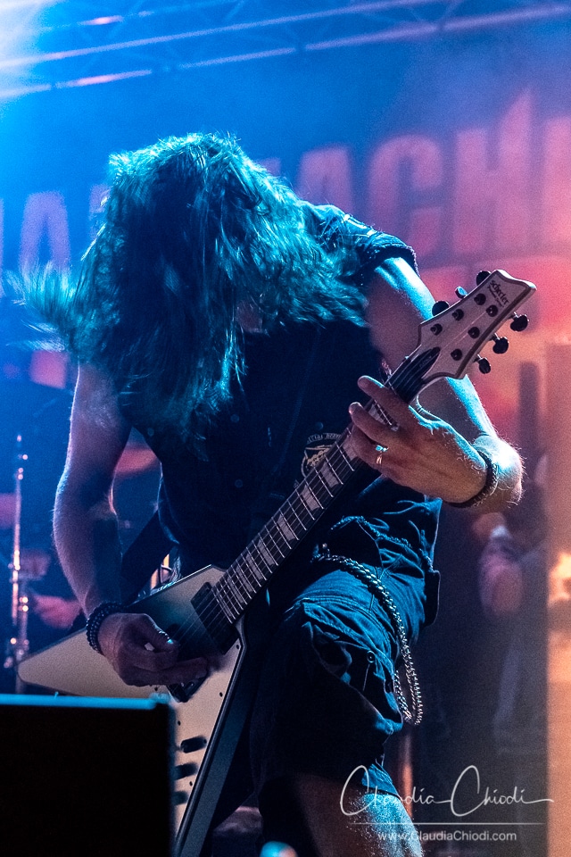 Während die Fotografen uns vom Press HQ auf den Weg zur letzten Band machten, immerhin hatten wir noch rund 15 Minuten Zeit bis Showbeginn, erklang von der Bühne bereits Musik. Zuerst dachten wir noch, das sei Pausenunterhaltung, doch schnell merkten wir, das war live. Wir nahmen also die Beine in die Hand und rasten zum Pit. Glücklicherweise ist die Security am SOA super und wir durften zum Fotografieren in den Graben. MAN.MACHINE.INDUSTRY lieferten zum Abschluss nochmals eine interessante Show und eine ordentliche Portion Thrash Metal.