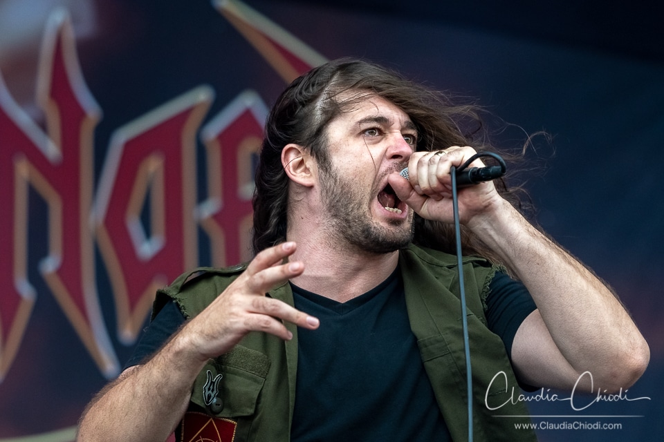 Seit ihrer Gründung 2004 war die Band vielen Besetzungswechseln unterworfen. Von der ursprünglichen Truppe ist nur noch Sänger John Kevill dabei. Auch musikalisch gab es einige Änderungen, bis sie mit dem aktuellen Album Woe tot he Vanquished wieder zu ihren Wurzeln im Thrash Metal zurückkehrten. Auch WARBRINGER gelang es nicht, mich von diesem Genre zu überzeugen. Doch es hatte genügend Metalheads in Falun, die kräftig mitrockten und beim headbangen die Haare fliegen liessen.