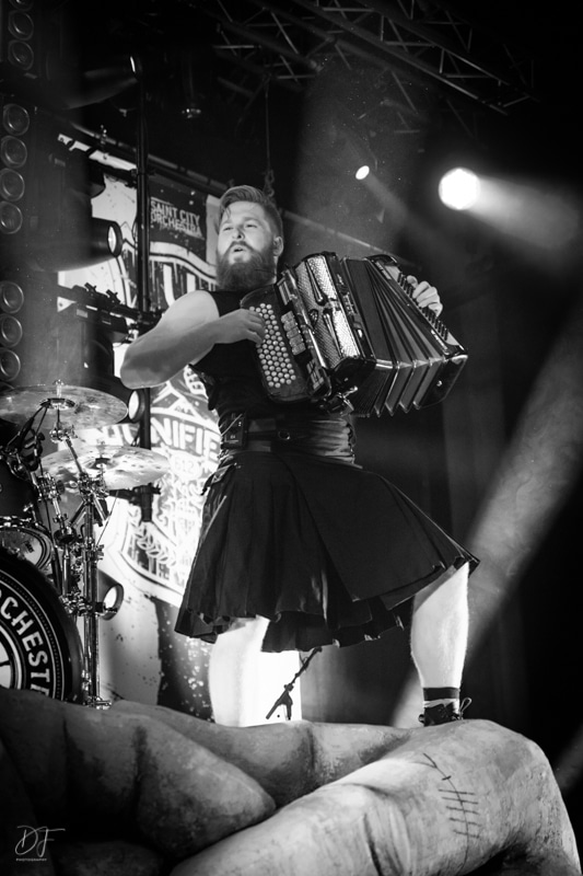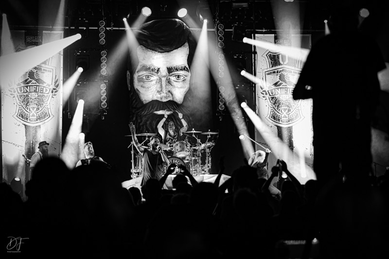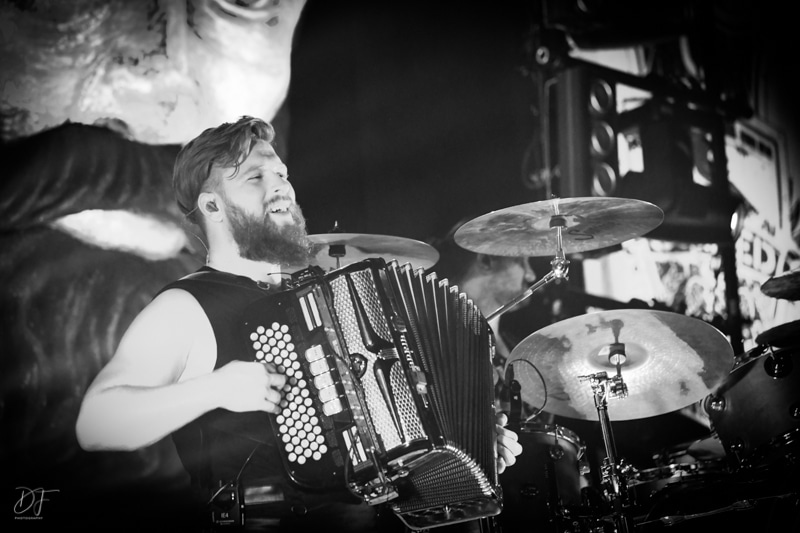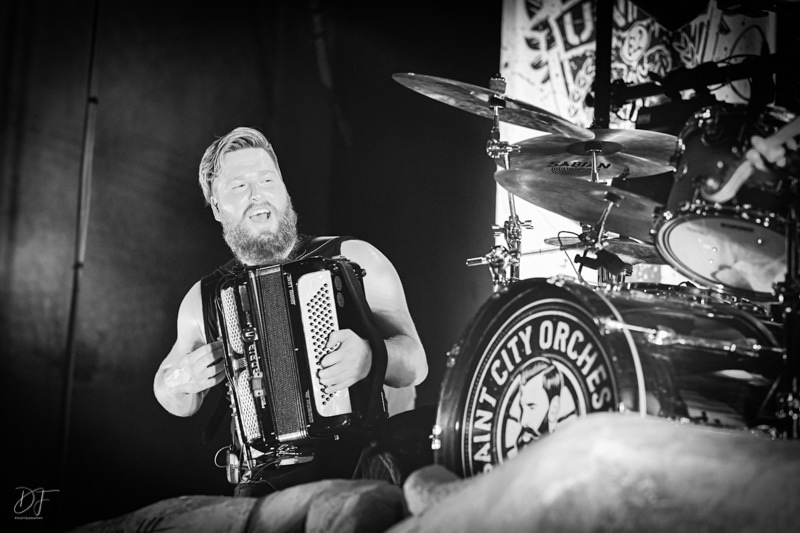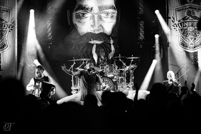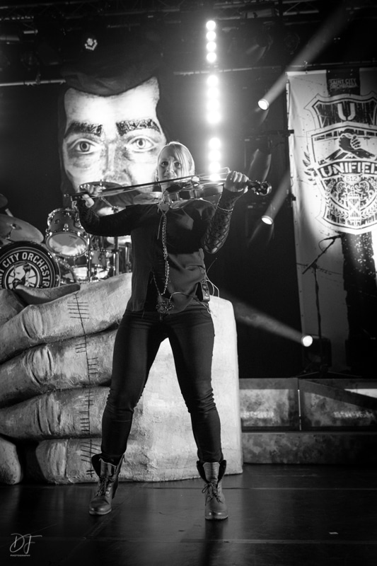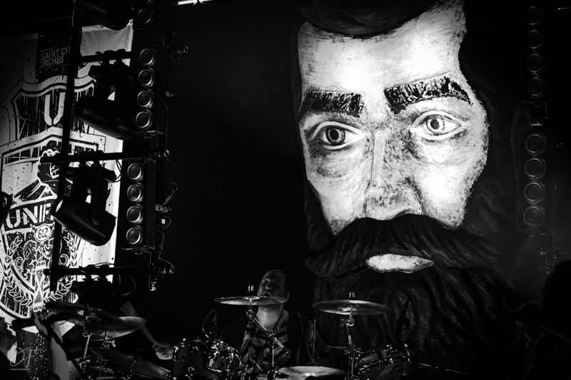 SAINT CITY ORCHESTRA waren angetreten, ihre neue CD „Unified“ zu releasen. Bereits im Vorfeld wurde das neuen Bühnenbild als eines der Show-Highlights angekündigt – und das löste es auch ein. Der grosse Mann mit den starken Augenbrauen und dem Riesenschnauzer hielt das Drumset in seinen starken Händen – so stark, dass sich auch Bass, Gitarre und Fiedel nach Bedarf darauf austoben durfte.