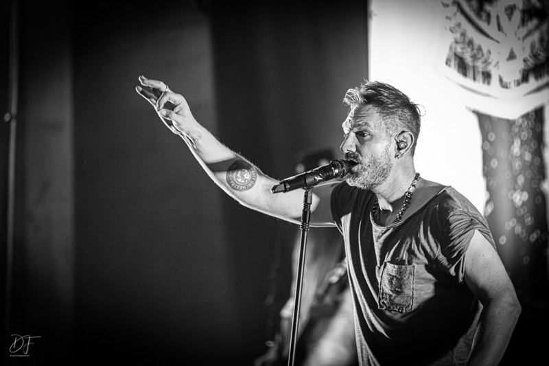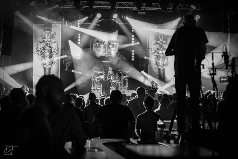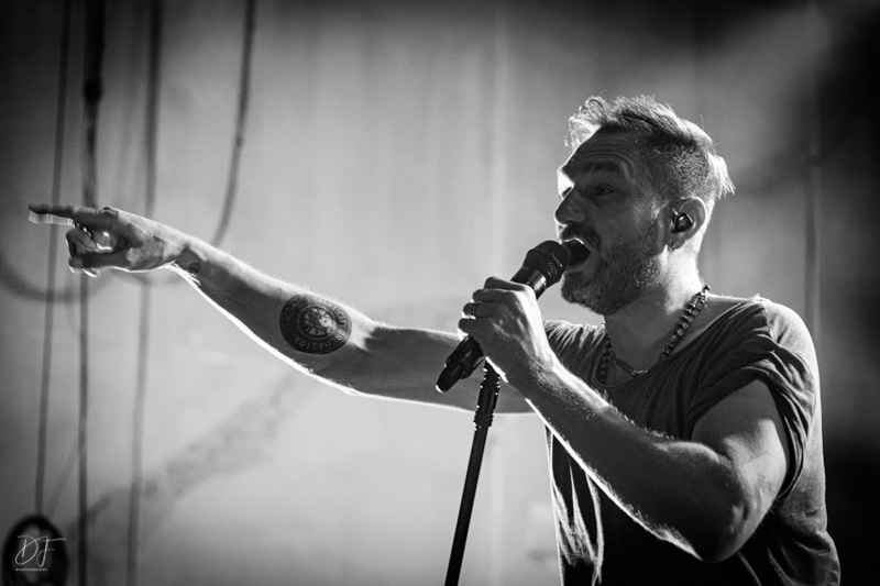 Erstens; liebe Bands, warum braucht ihr immer diese rote und blaue Licht, kombiniert als eine lila Zumutung? Und warum spart ihr mit Frontlicht? Als Fotograf war das Konzert des SAINT CITY ORCHESTRA nicht nur eine Herausforderung, sondern teilweise eine Katastrophe. Wie wäre es als Kompromiss; die ersten drei Songs vernünftig beleuchtet, anschliessend freies Abtauchen in lichtermässige Tiefen?