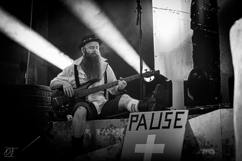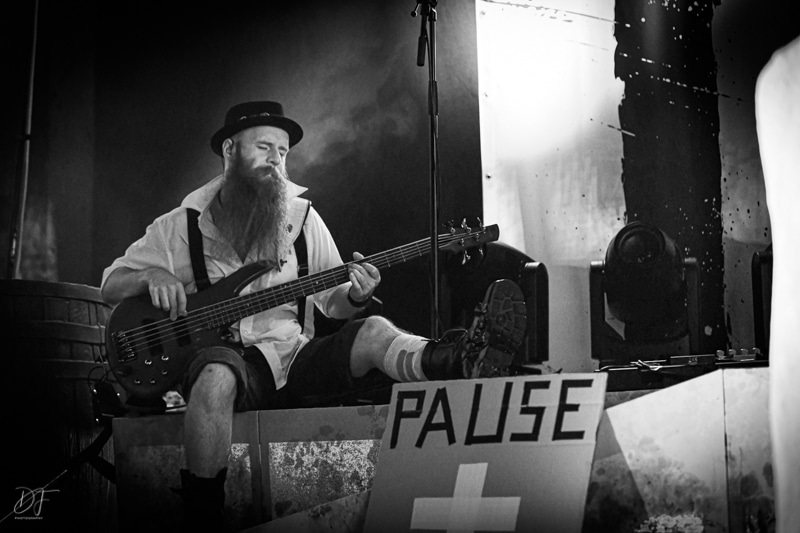 Nett war auch die Möglichkeit für Basser Rouven Rapp, dass er sich regelmässig hinsetzen durfte. Der gute Mann war vor rund einem Monat in einen Autounfall verwickelt, konnte das Konzert also nicht vollumfänglich „im Stehen durchstehen“.