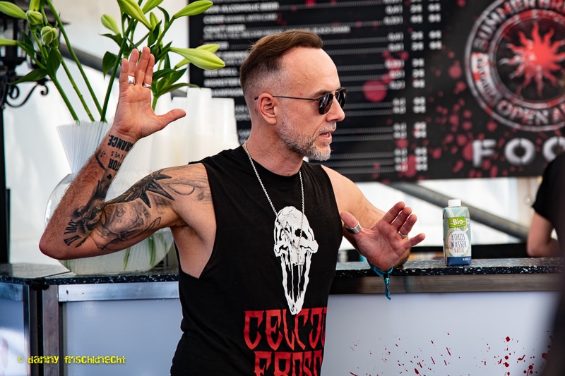Ganz gepflegt in der Artist Area von den Eigenkreationen gekostet und sich mit Nergal und Co. locker unterhalten – so darf das auch mal sein.