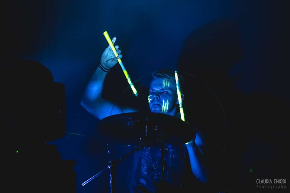 Nach der Umbaupause ging es mit SCHATTENMANN und viel NDH 2.0 Power sofort in die Vollen. Als erstes wurden wir ins «Schattenland» mitgenommen dann ging es mit «Schlag für Schlag» weiter bevor es im «Darkroom» richtig hell wurde. Ihrem Markenzeichen von der «Licht an» Tour, mit den Spezial Effekten von UV Licht und Farbe, waren sie treu geblieben und packten in Bereich Licht noch eine Schippe drauf.