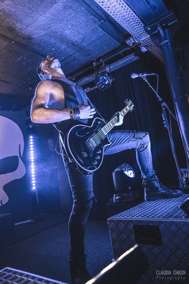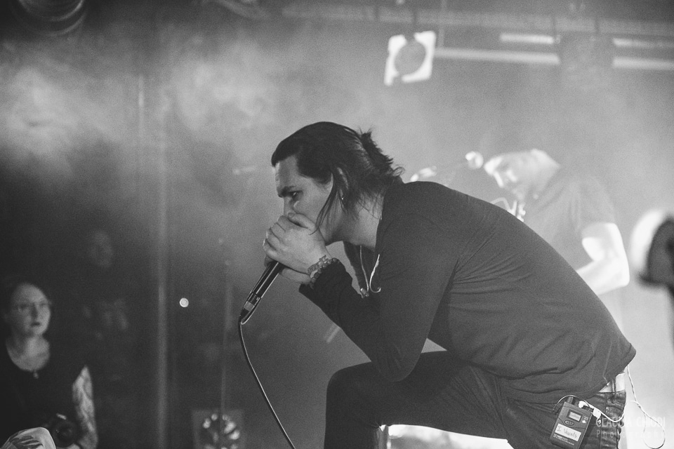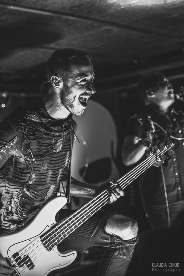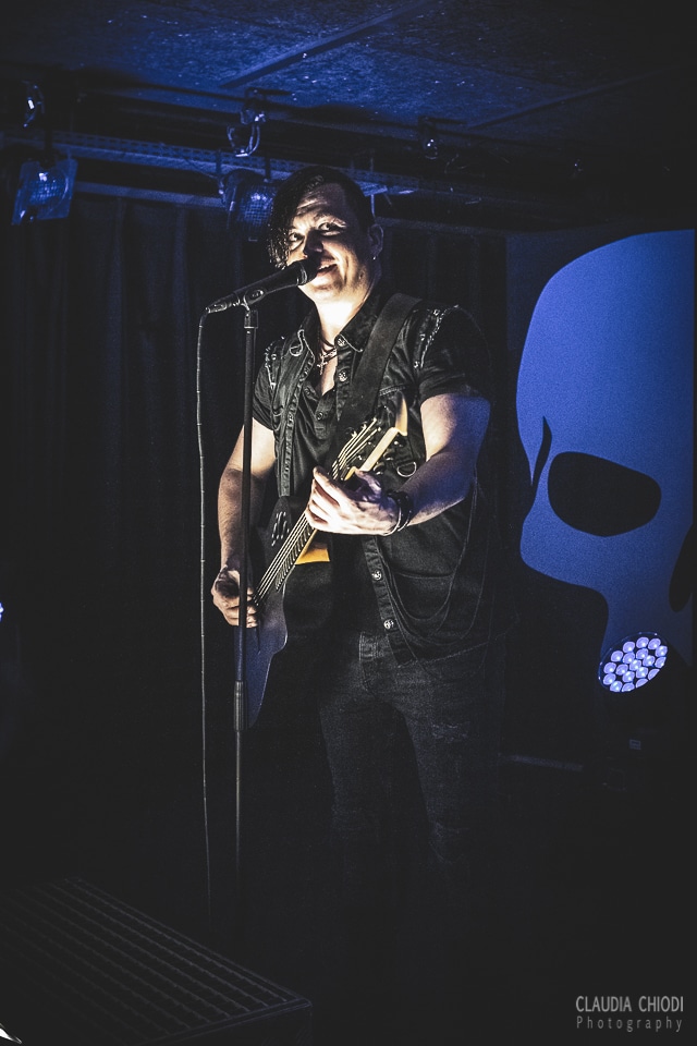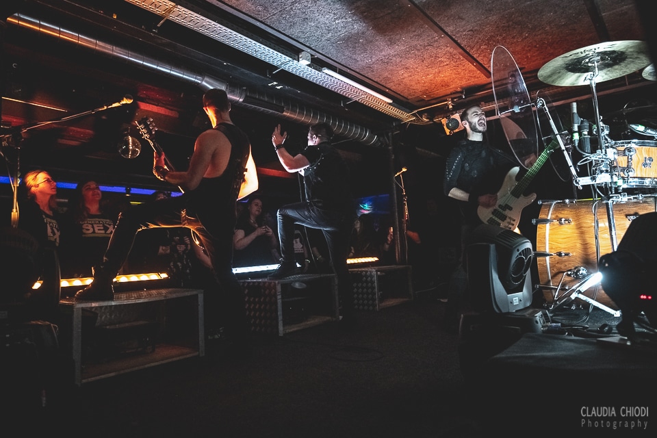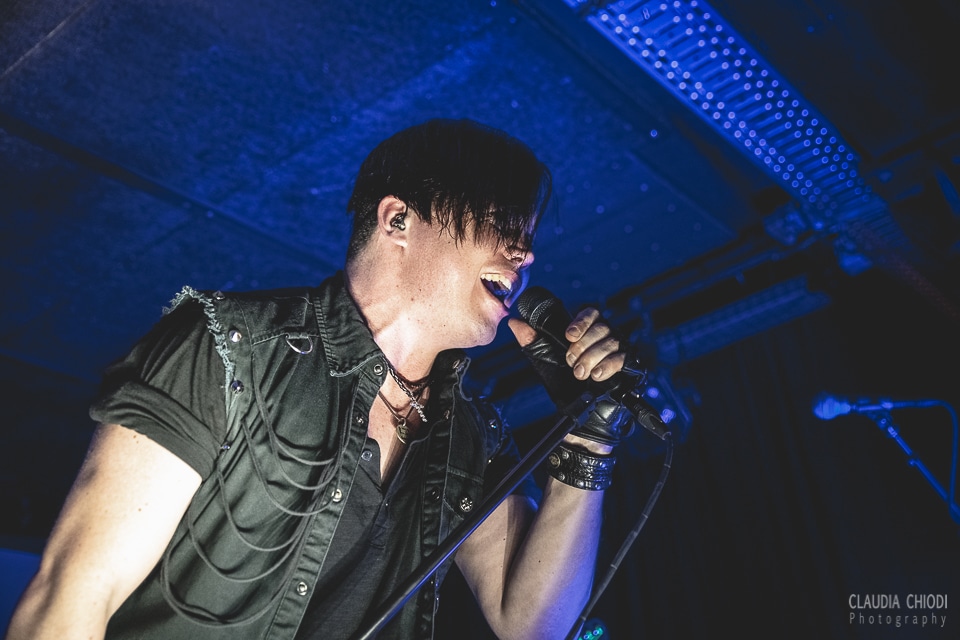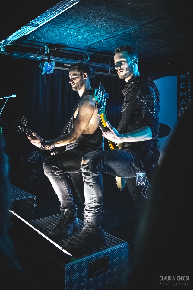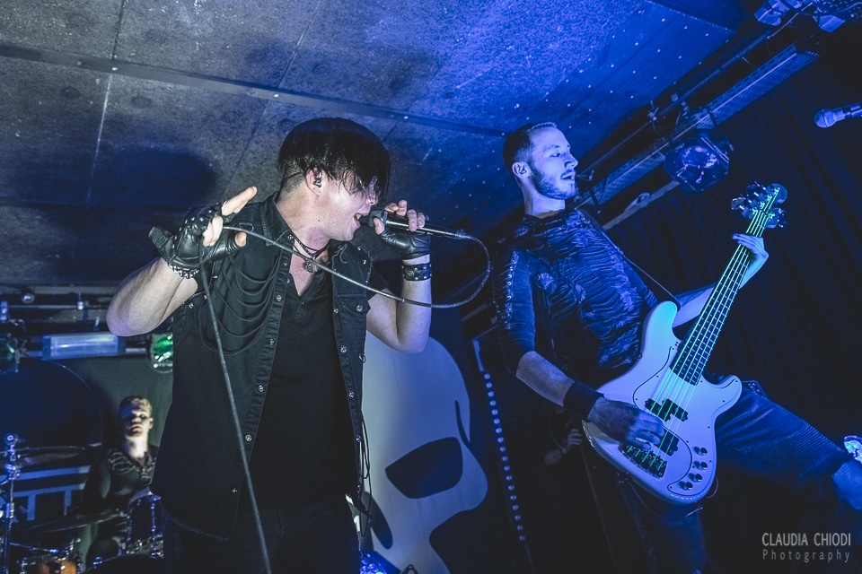 Den Abend in der gemütlichen Location eröffnen Dark Symphonic Rocker FLORIAN GREY. Bereits beim ersten Headline Konzert im Rahmen des Licht an Albums im vergangenen Herbst hat man zusammen gearbeitet und auch diesmal wärmen die düsteren und melancholischen Tracks das Publikum ordentlich an. Wenn für Sänger Florian die Decke auch etwas zu niedrig ist, so lässt sich der Bassist davon nicht im geringsten beeindrucken. Voller Elan und mit viel Sprungkraft fegt er über die Bühne und ist ohne Frage für die Action zuständig. Ein weiteres Highlight war der Gastauftritt von Matteo vDiva. Ist der Frontmann von HELL BOULEVARD bereits auf dem Album Ritus als Gast zu hören, gibt er sich an diesem Abend auch live die Ehre. Sehr stimmungsvoll ist auch der Einsatz der Nebelmaschine, wenn auch der Drummer zu hören, aber selten zu sehen ist. Etwas gezielter hätte mir dieser Effekt persönlich etwas besser gefallen, aber das sollte jetzt den Gesamteindruck nicht beeinträchtigen.