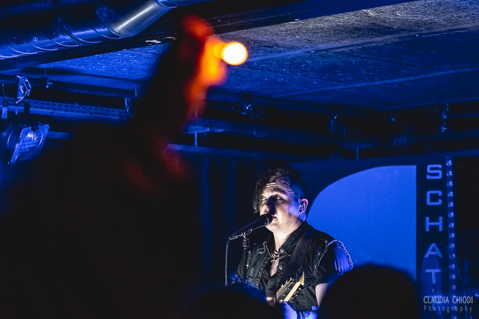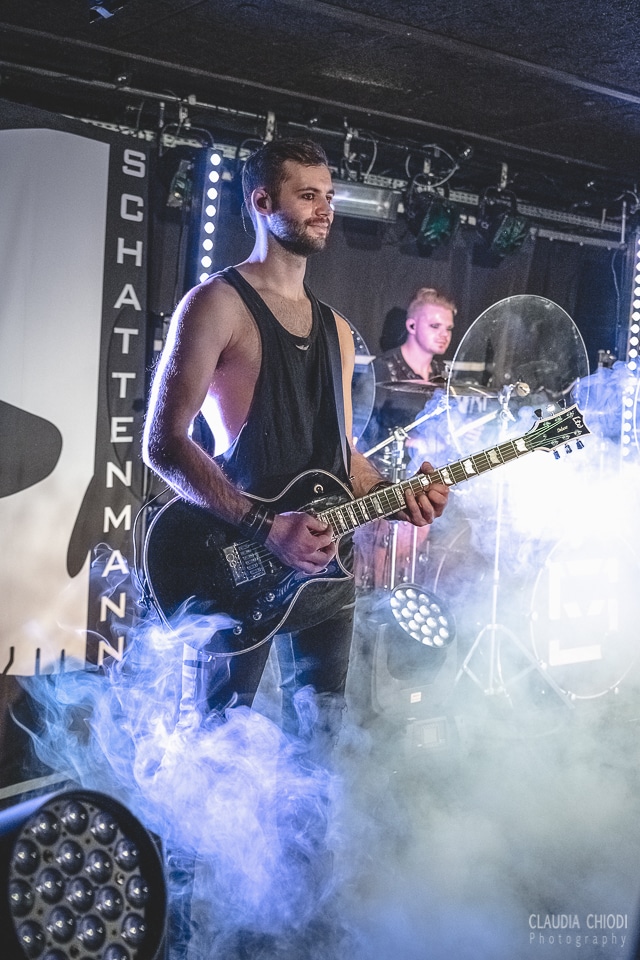 Mit ihrem Erstlingswerk Licht an haben die Schattenmänner für Aufsehen gesorgt und waren bereits mit Bands wie Megaherz, Hämatom und Unzucht unterwegs. Für ihre eigene Tour machten sie in der Schweiz nun im OXIL halt, eine Location, welche für Sänger Frank nicht fremd ist, aber dazu später mehr. Mit ihrem Markenzeichen, der UV Licht Show bei Schattenmann, eröffnen sie wie von den Fans erwartet das Konzert. Rasant geht es weiter, mit Konfetti Flinte bei 9mm und Kettensäge bei Amok, kommen auch zusätzliche Requisiten zum Einsatz, sehr zur Begeisterung der Anwesenden. Da im Sommer die neue Scheibe der Nürnberger erscheint, dürfen auch zwei Songs derselben auf der Setliste nicht fehlen. Der Titeltrack Epidemie haut schon richtig rein, aber Ruf der Engel bleibt dann definitiv hängen und lässt einen nicht so schnell los. Auch mein Favorit Gekentert ist auf der Setliste und das gleich zweimal. Einmal in der regulären Fassung und zu Beginn der Zugabe als akustische Version mit Frank und seiner Gitarre. Und mit Gitarre auf dieser Bühne kennt er sich aus, hat er doch schon das eine oder andere Mal hier in die Saiten gegriffen.