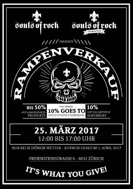 Wir freuen uns Dich am 25. März zu unserem 1. Souls of Rock Rampenverkauf an der Freiensteinstrasse 6 in Zürich begrüssen zu dürfen. Auf das gesamte Sortiment erhälst Du einen Rabatt von 10% und auf ausgewählte Artikel gibt’s sogar bis zu 50%, first come, first serve!