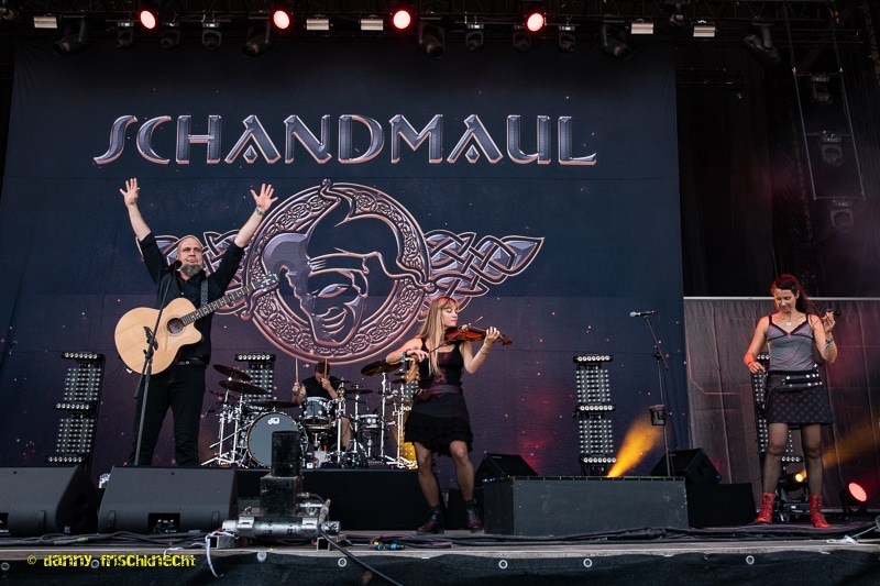 SCHANDMAUL liessen sich nicht beeindrucken, es bleiben auch durchaus genügend Leute vor der Bühne, die mittanzten und -hüpften, textsicher waren und sich am Dargebotenen erfreuten. Seien es Lieder wie „Vogelfrei“, „Leuchtfeuer“ oder „Walpurgisnacht“ – Höhepunkte waren sicherlich die Anti-Nazi-Hymne „Bunt Und Nicht Braun“ sowie die Abschlussballade „Dein Anblick“.