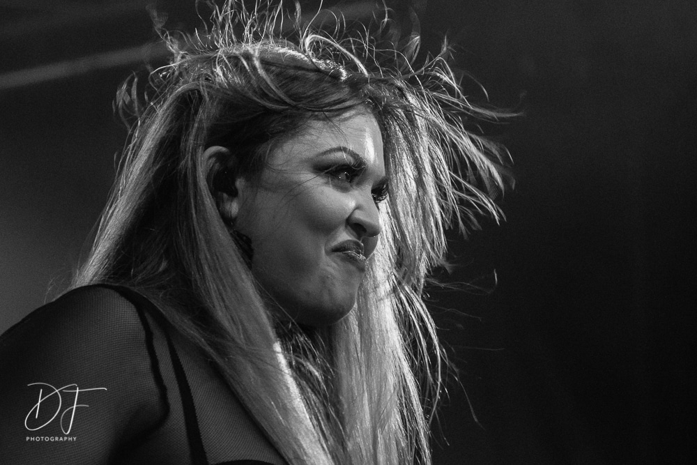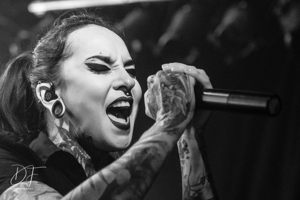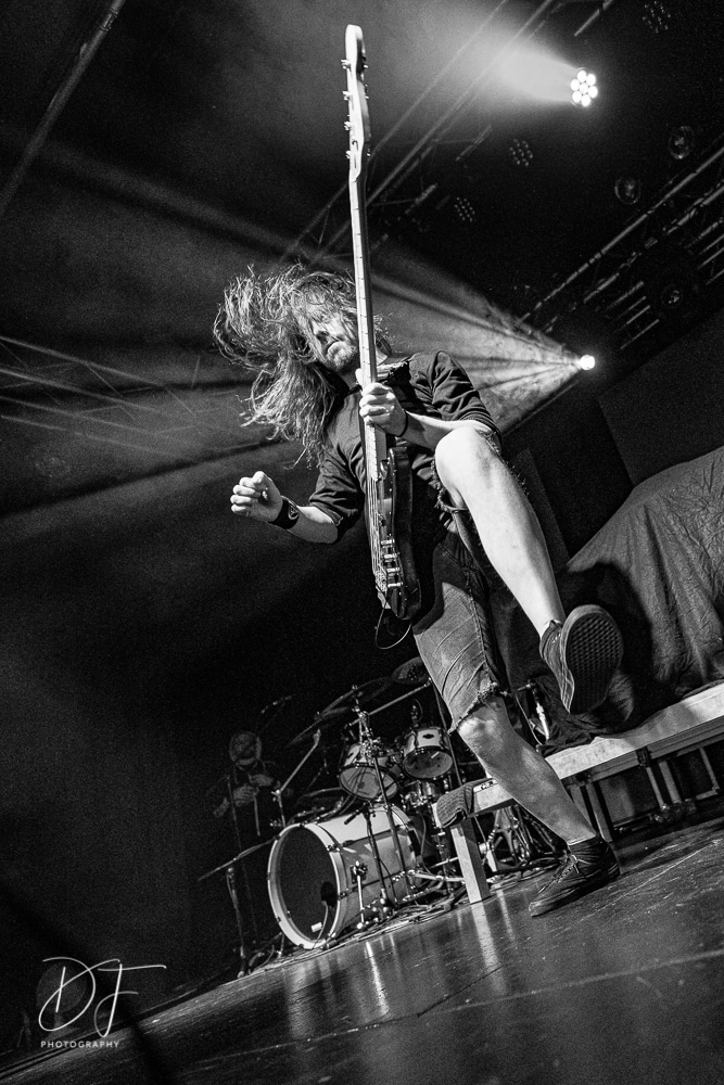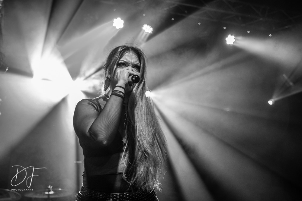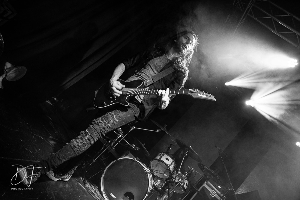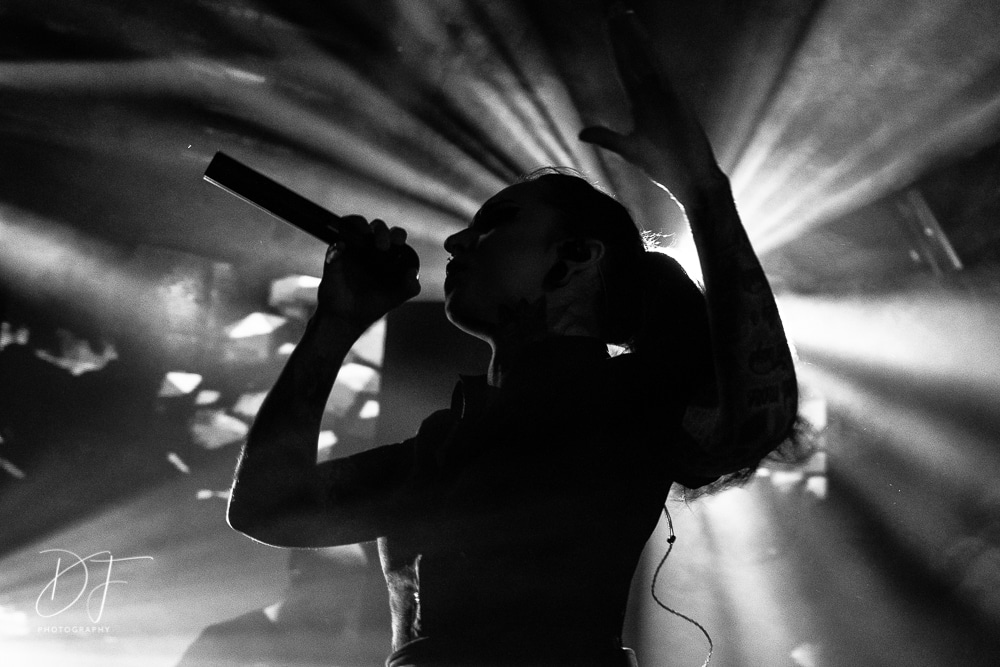 Sängerin Vicky Psarakis startete gemeinsam mit Gitarrero Danny Marino, Drummer Simon McKay sowie dem zweiten Saitenarbeiter Pascal „Paco“ Jobin und besonders dem hyperaktiven Basser Chris Kells eine fulminanten Show. Die Kanadier brachen das Dynamo in Kürze ab, wahrscheinlich der Grund für den Lichtmangel bei JINJER. Aber davon später.