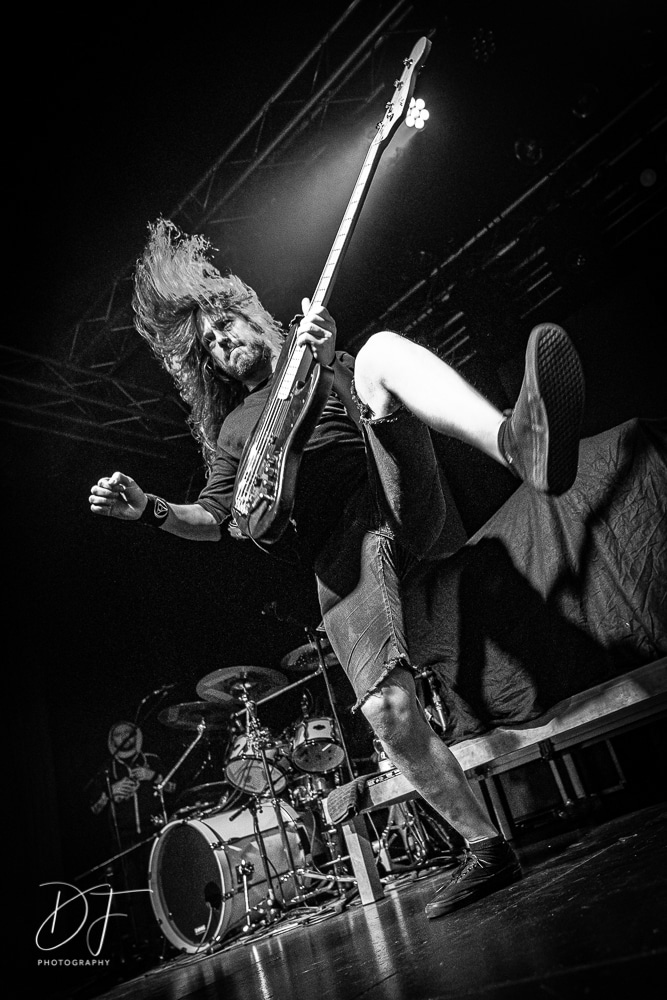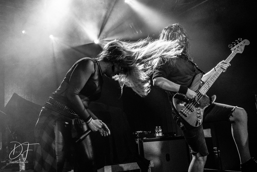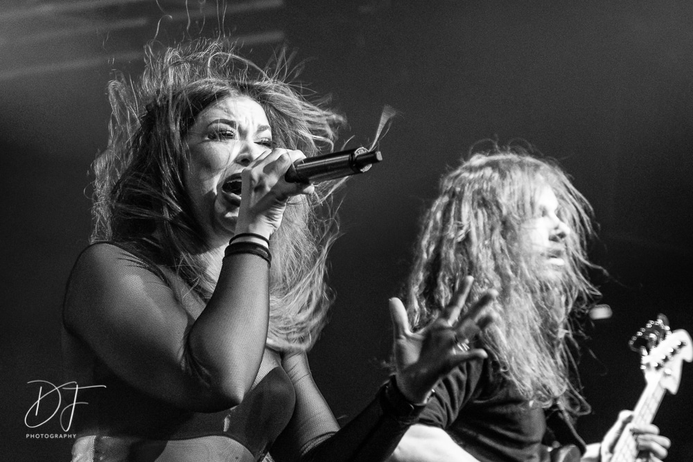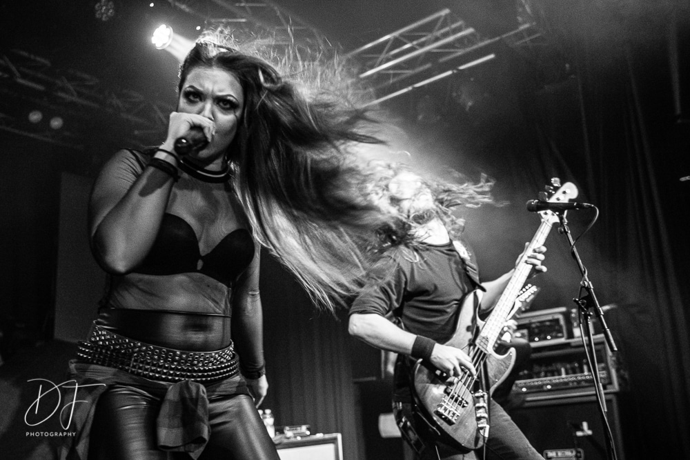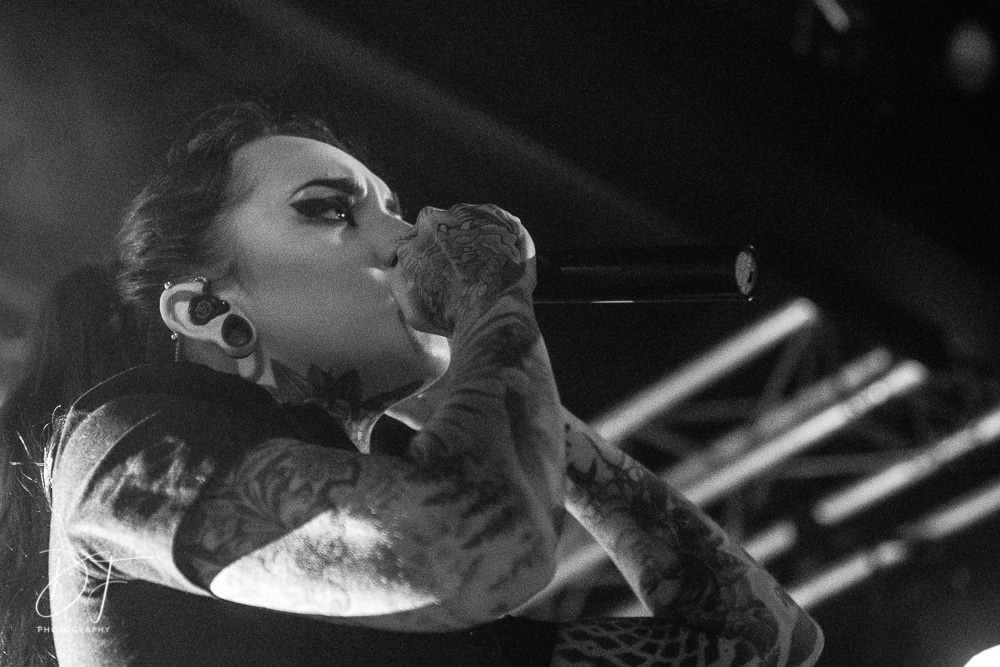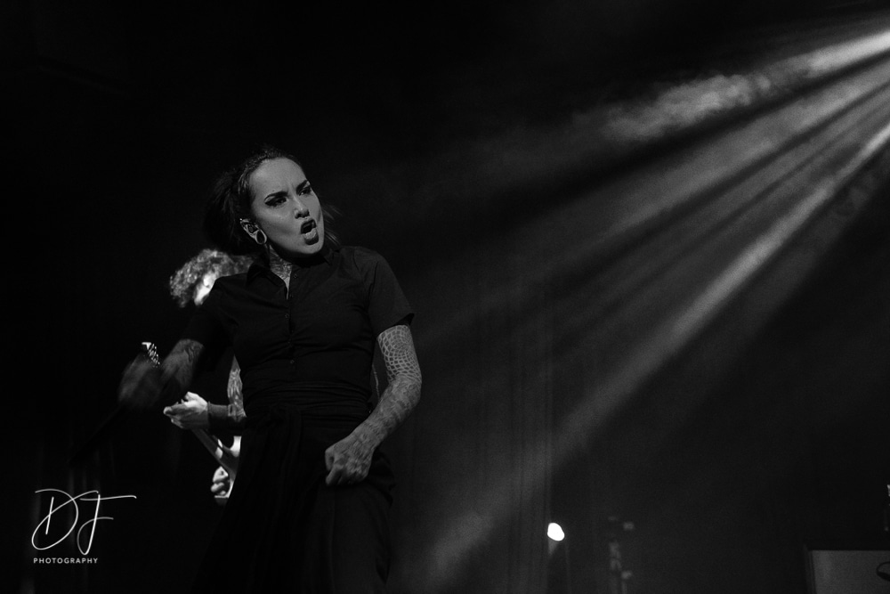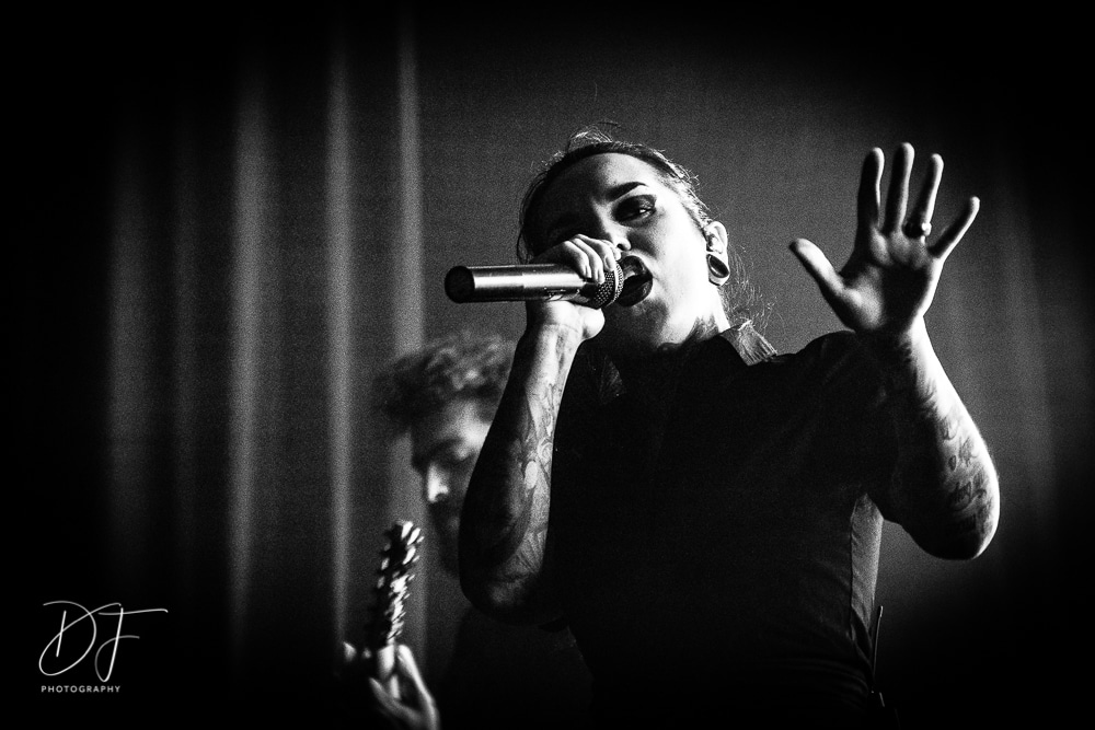 Sängerin Vicky Psarakis startete gemeinsam mit Gitarrero Danny Marino, Drummer Simon McKay sowie dem zweiten Saitenarbeiter Pascal „Paco“ Jobin und besonders dem hyperaktiven Basser Chris Kells eine fulminanten Show. Die Kanadier brachen das Dynamo in Kürze ab, wahrscheinlich der Grund für den Lichtmangel bei JINJER. Aber davon später.