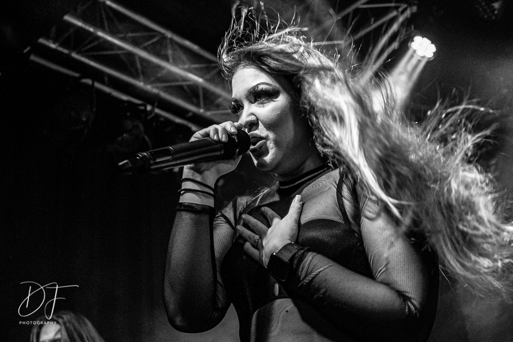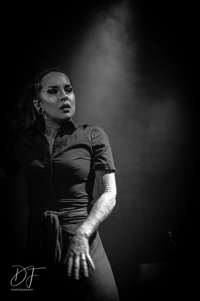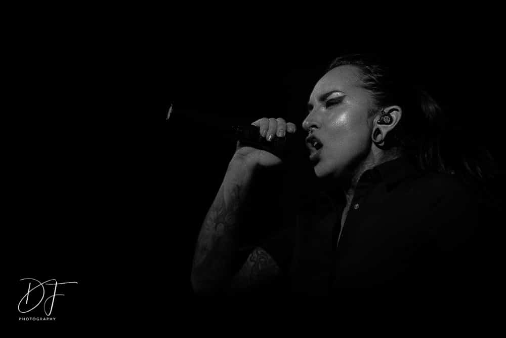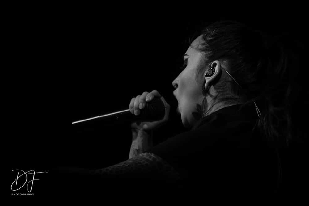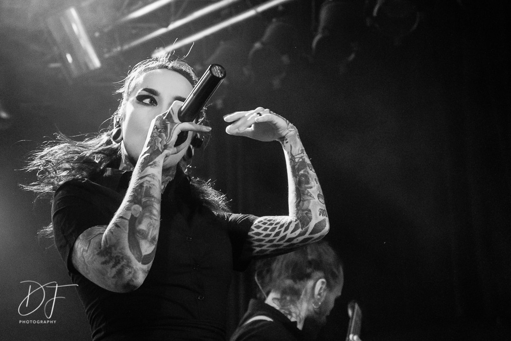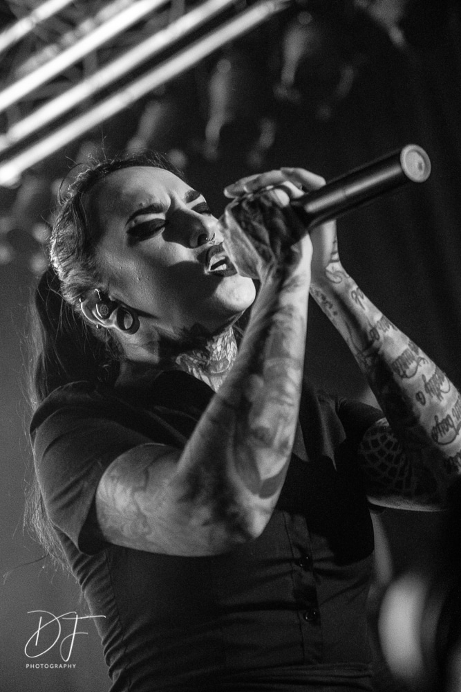 Sängerin Vicky Psarakis startete gemeinsam mit Gitarrero Danny Marino, Drummer Simon McKay sowie dem zweiten Saitenarbeiter Pascal „Paco“ Jobin und besonders dem hyperaktiven Basser Chris Kells eine fulminanten Show. Die Kanadier brachen das Dynamo in Kürze ab, wahrscheinlich der Grund für den Lichtmangel bei JINJER. Aber davon später.
