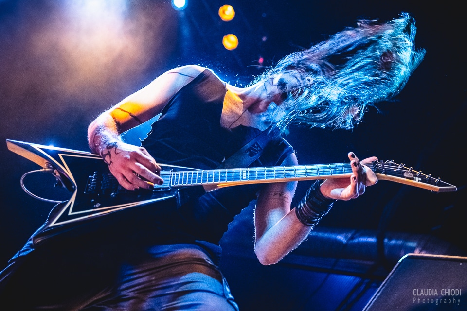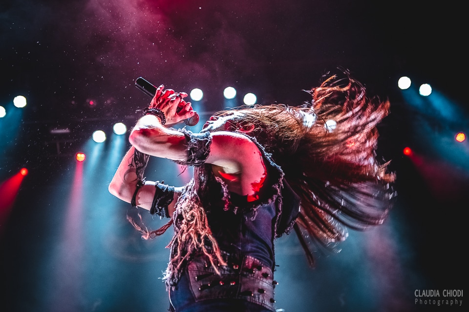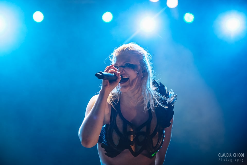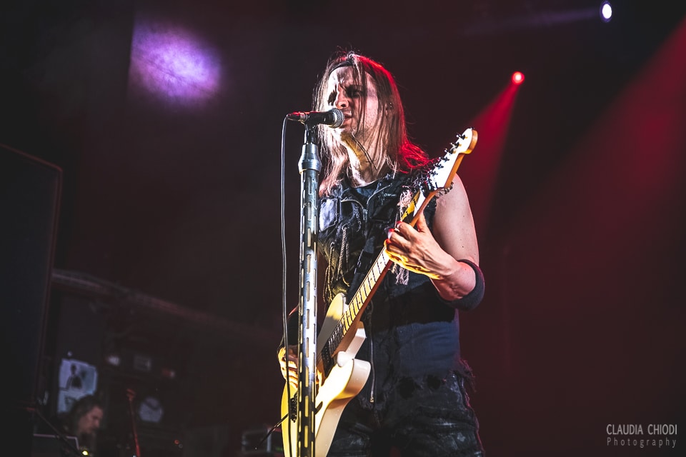 Mit drei Gitarristen bringt die Band unglaublich viel Druck mit auf die Bühne, mit ebenfalls drei Sängern ist auch ordentlich Stimmgewalt vorhanden. Die Kombination von der glockenklaren, und keineswegs leisen, Stimme von Ylva und den Reibeisen-Growls von Joakim gehen im Duett einfach immer wieder unter die Haut.