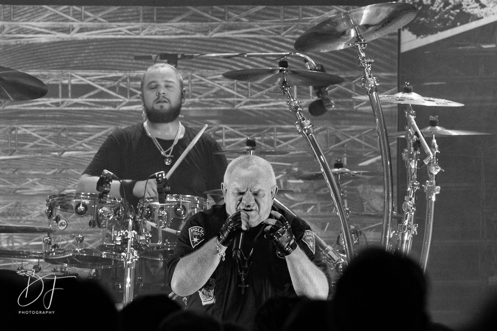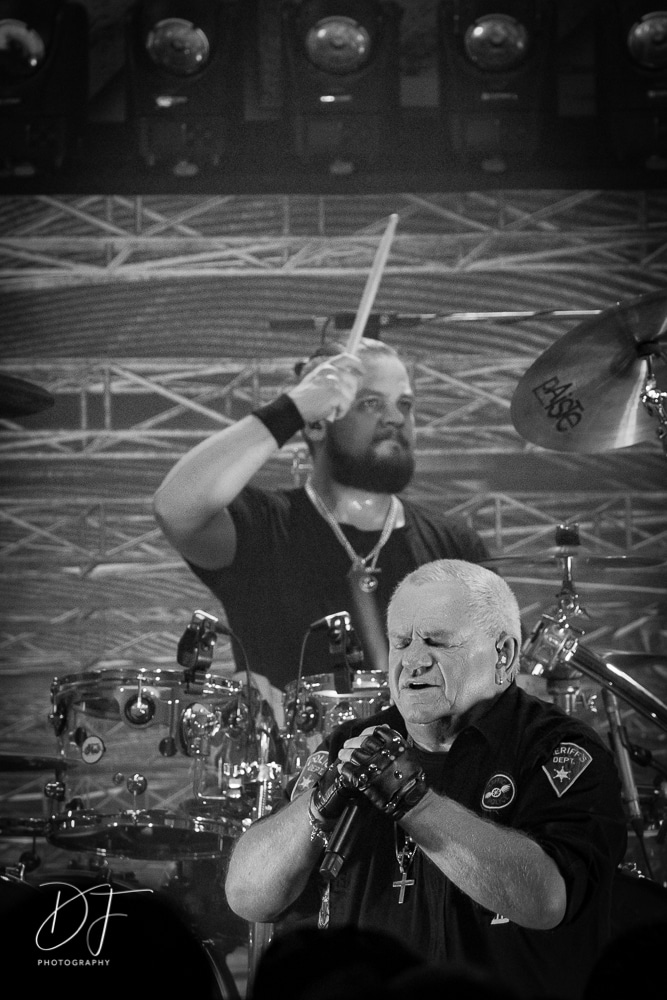 Viel wichtiger ist, dass Dirkschneider mit U.D.O. eine Band am Start hat, die sich mehr als hören lassen kann. Mit Dee Dammers und Andrey Smirnov gehören zwei hochklassige Gitarristen dazu, Bassist Tilen Hudrap macht ebenfalls einen guten Job. An den Drums hat kein Geringerer als Sven Dirkschneider Platz genommen – Udo’s Sohn. Es hat auch durchaus seine Gründe, warum dieser Mann bei SAXON als Drumtec gearbeitet und auch die eine oder andere Vertretung von Nigel Glockler machen konnte; der Junge hat nicht nur einen drauf, sondern auch eine extrem Fotografen-freundliche Waschküche…