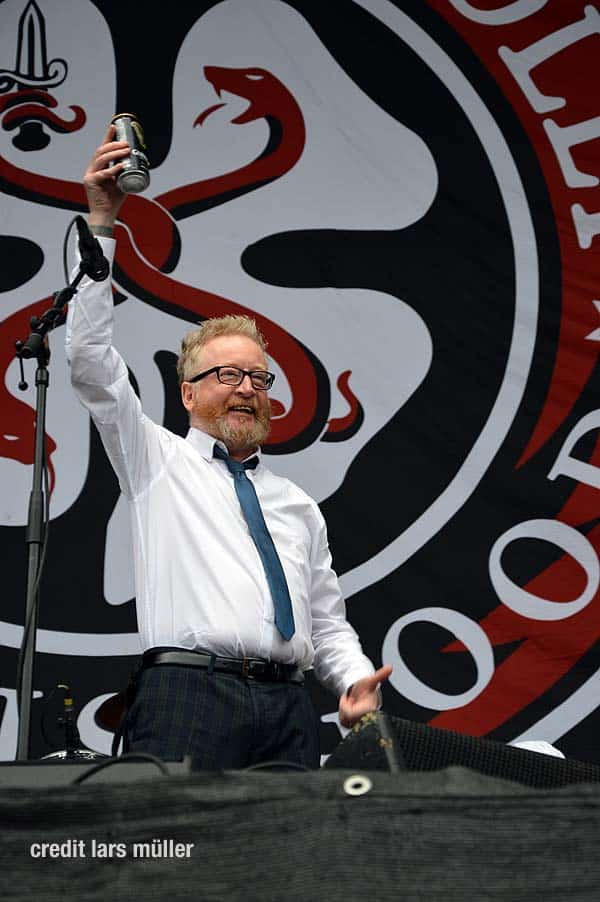 Als erstes sah man Sänger Dave King mit einem Guinness in der einen Hand vor dem Mikrofon. Mit breitem Grinsen meinte er nur „It’s Breakfast Time“.