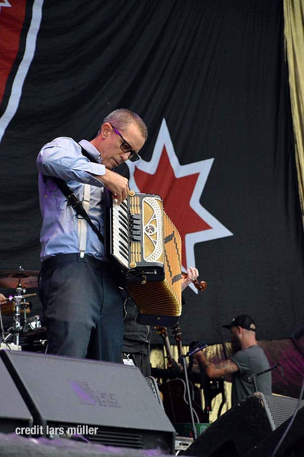 FLOGGING MOLLY zelebrierte somit eine regelrechte Party im Stadion. Immer mehr Mosh Pits konnte man beobachten.