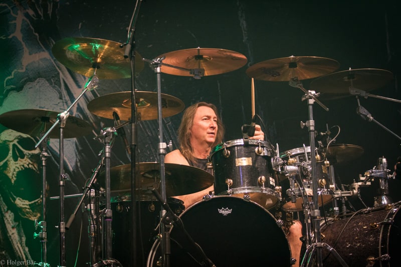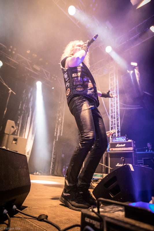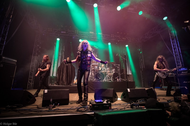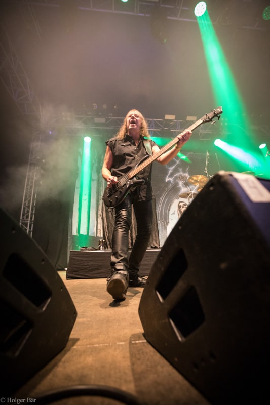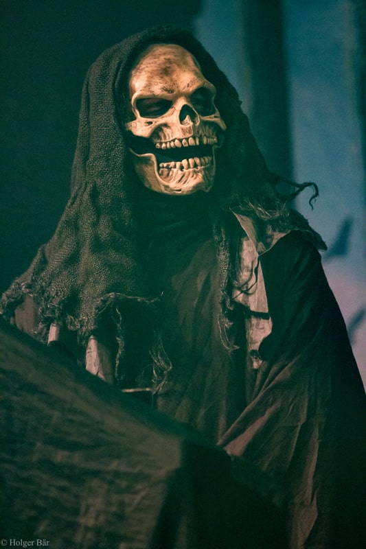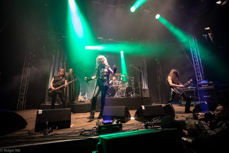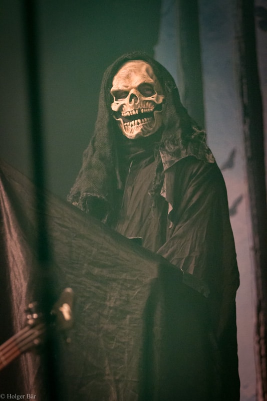 Obwohl auf der Hauptbühne sich GRAVE DIGGER die Ehre gaben, zogen auch die Krähen ein großes und vor allem begeistertes Publikum an. Schnell sprang der Funke über und das Theater verwandelte sich in einen riesigen Tanzsaal. Aber wenn die Krähenkönigin schon zum Tanz bittet, wer kann dann auch „Nein“ sagen?