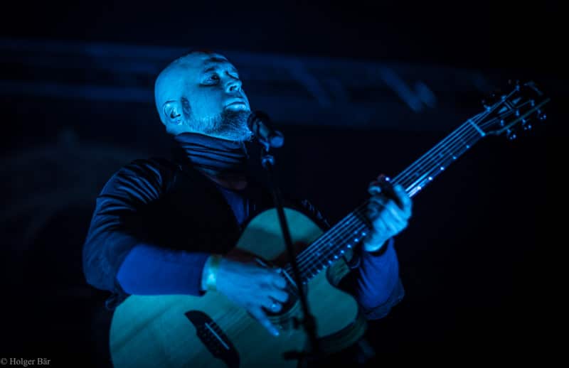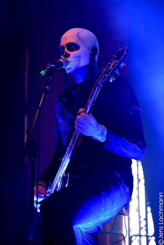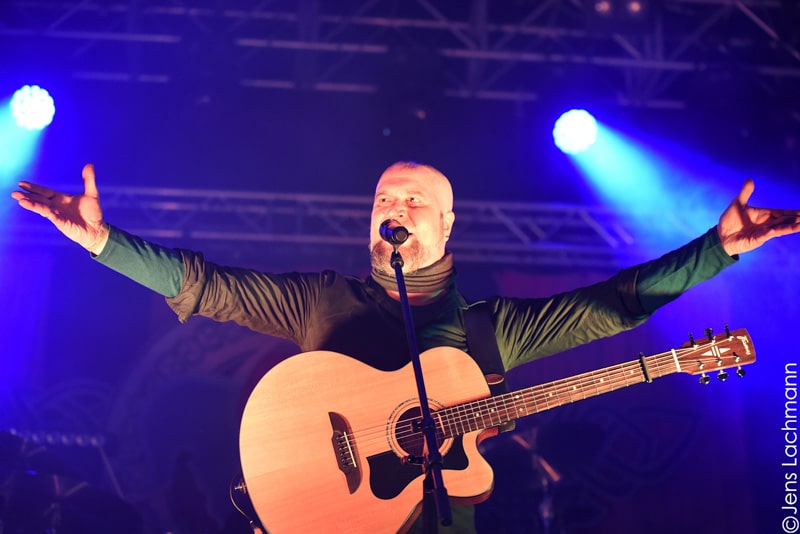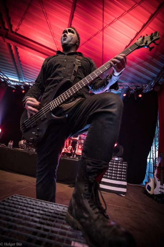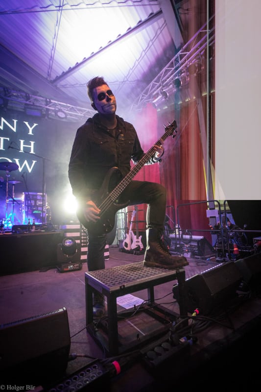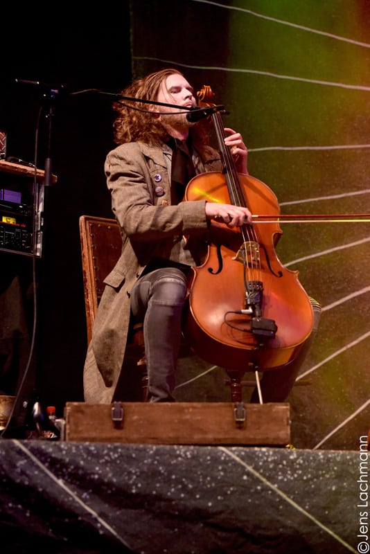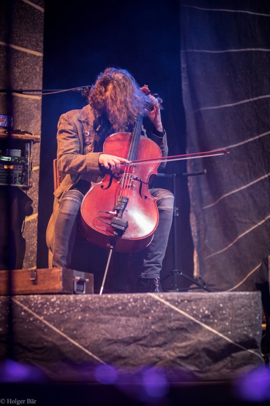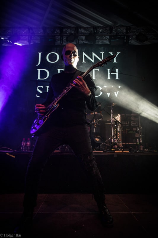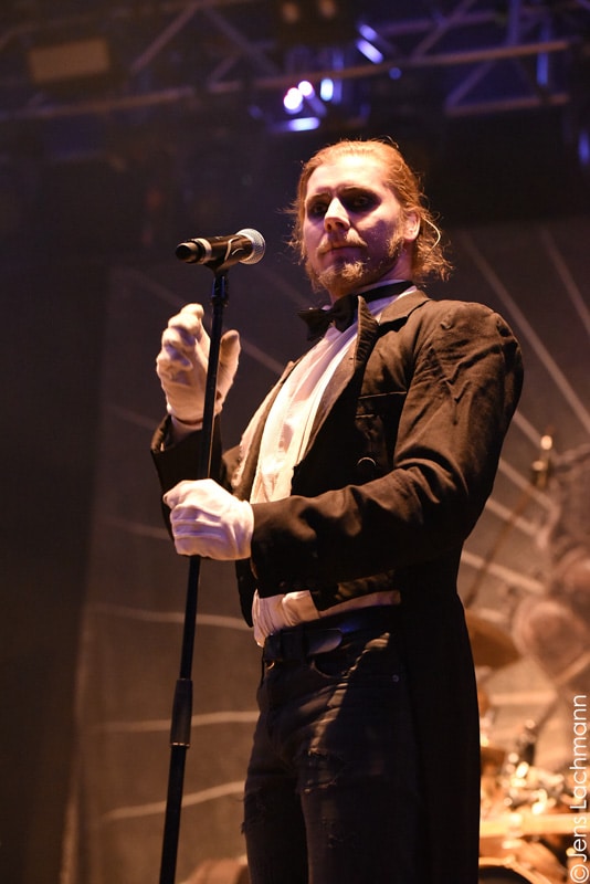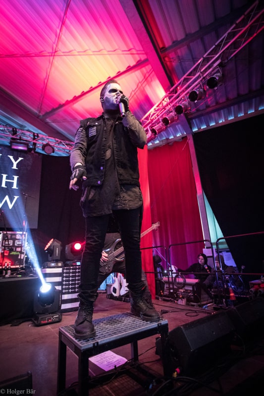 Ehe das musikalische Programm am Samstag beginnt, wagen wir trotz der Kälte einen kleinen Spaziergang über den Mittelaltermarkt. Wie schon im vergangenen Jahr hielt man diesen auf dem Hauptgelände recht weitläufig und überschaubar, stattdessen gab es auf dem Außengelände viel Freiraum zum Verweilen. Stelzenläufer und schillernde Fantasiewesen, die die Besucher neckten, komplettierten das Ambiente des verwunschenen Dorfs. Nach einem rustikalen Mittagessen an einem der mittelalterlichen Essensstände lockt das „Theatre Of Grace“, in welchem JOHNNY DEATHSHADOW unseren Samstag musikalisch einläuten.