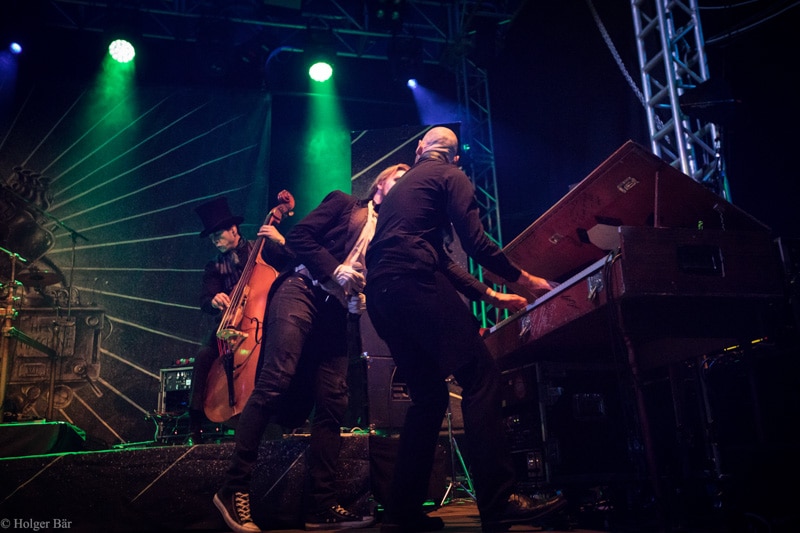 Doch die WACKEN WINTER NIGHTS warten an diesem Tag mit mehr als einem Highlight auf: COPPELIUS beenden ihre Bühnenabstinenz und läuten ein neues Kapitel mit ihrem Auftritt auf dem winterlichen Festival ein. Dementsprechend gefüllt ist der „Ice Palace“ am frühen Abend, den Fans wird dabei ein amüsantes, kabarettistisches, doch vor allem technisch versiertes Konzert geboten. Dass COPPELIUS nach wie vor Meister an ihren Instrumenten sind, beweisen die Herren mit einem Best Of ihrer Stücke auf eindrucksvolle Art und Weise, ein Höhepunkt ist bei dem Auftritt nur schwer festzumachen.