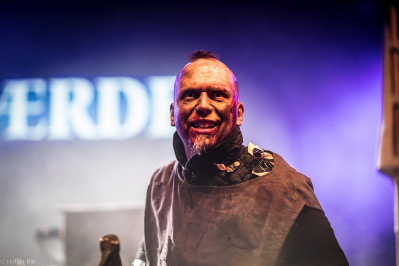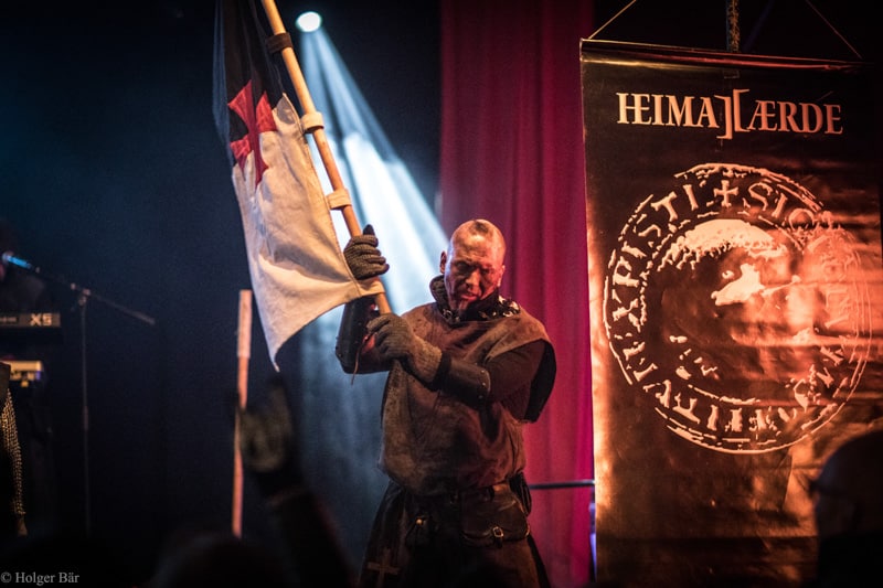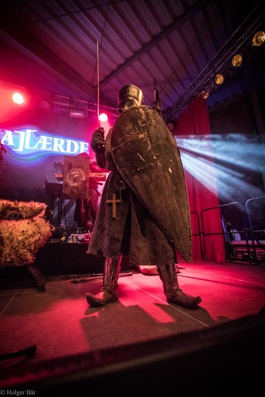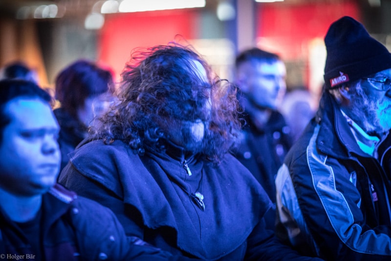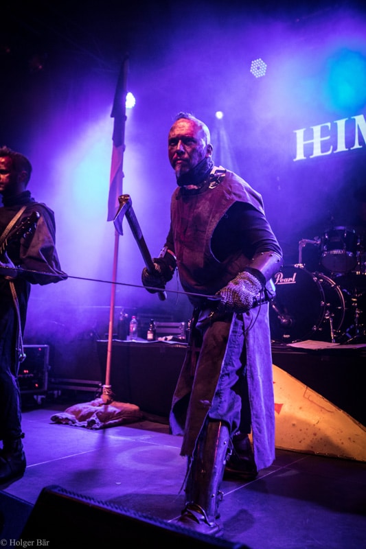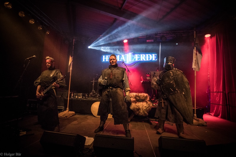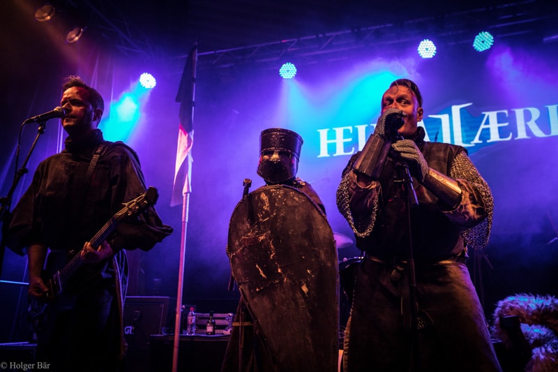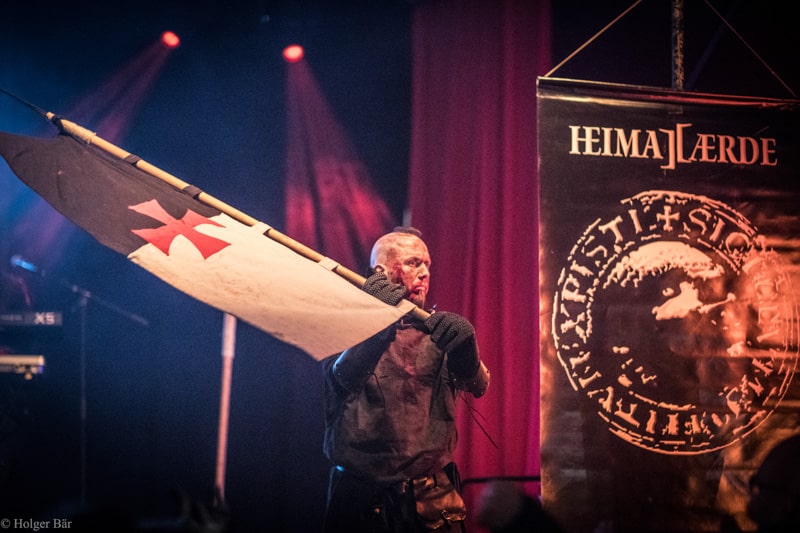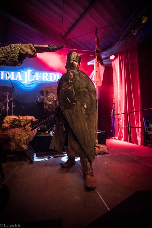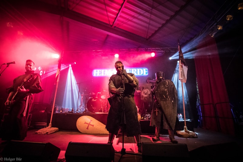 Dennoch fällt unsere Wahl wieder auf die kleine Bühne im „Theatre Of Grace“, wo die Tempelritter Einzug halten. HEIMATAERDE beenden den Tag mit ihrer extrovertierten Mischung aus EBM und Mittelalter, gepaart mit blutigen Showelementen. Düster, doch zeitgleich mit einem selbstironischen Humor („Wir sind die Scooter der Schwarzen Szene!“) spielen sich die Templer damit schnell in die Herzen der Zuschauer und lassen den Nordwind, der um solch späte Stunde ums Gelände fegt, gleich einige Grad wärmer erscheinen.