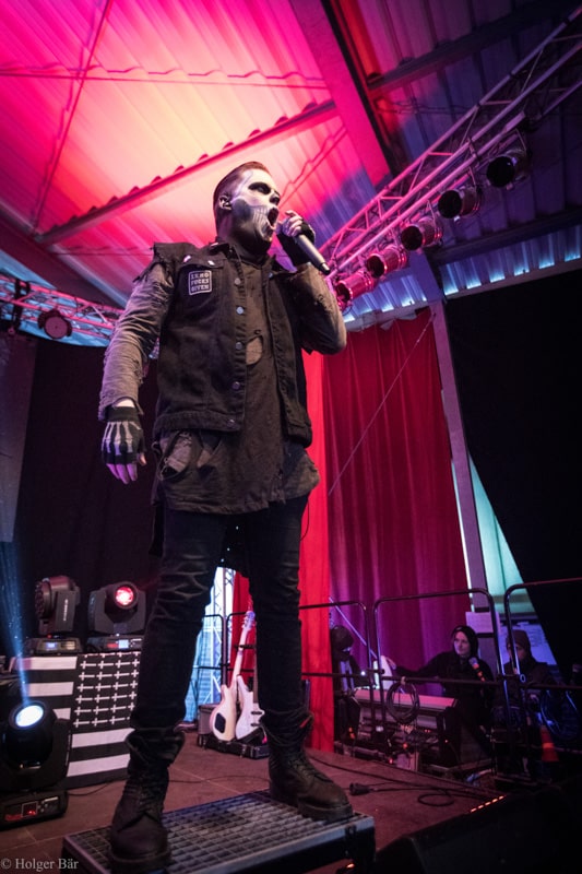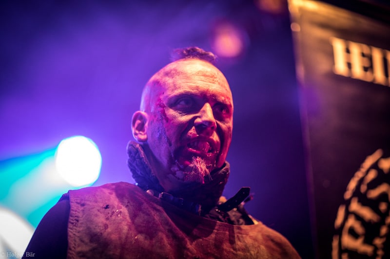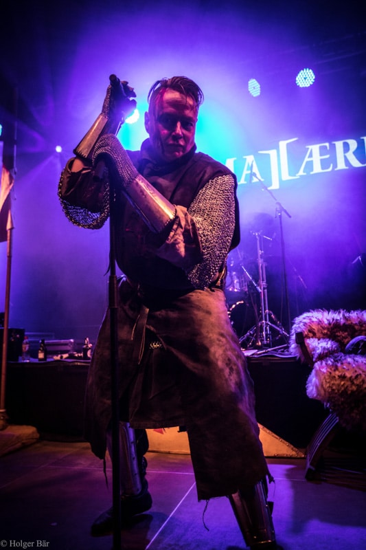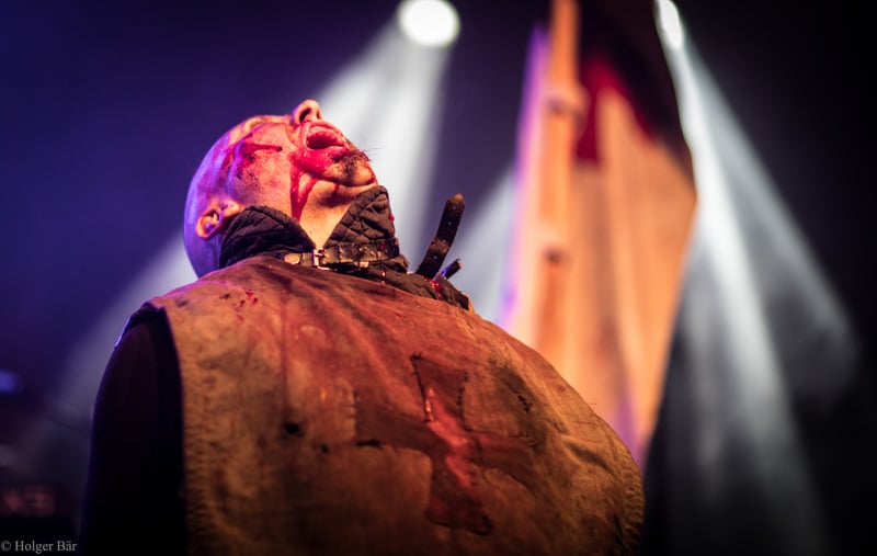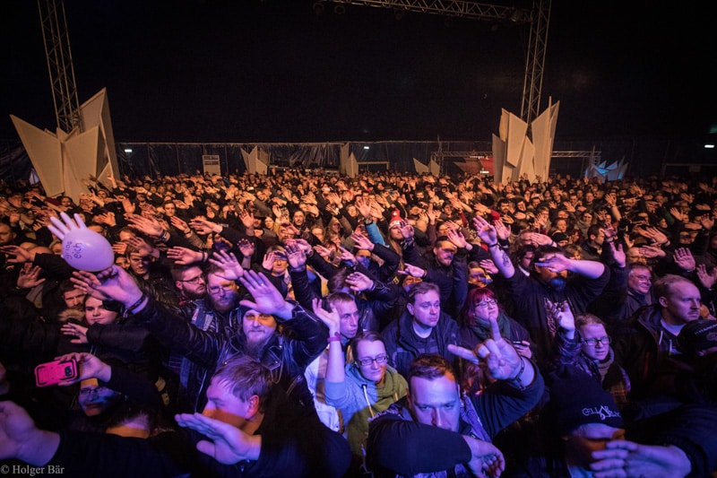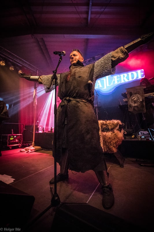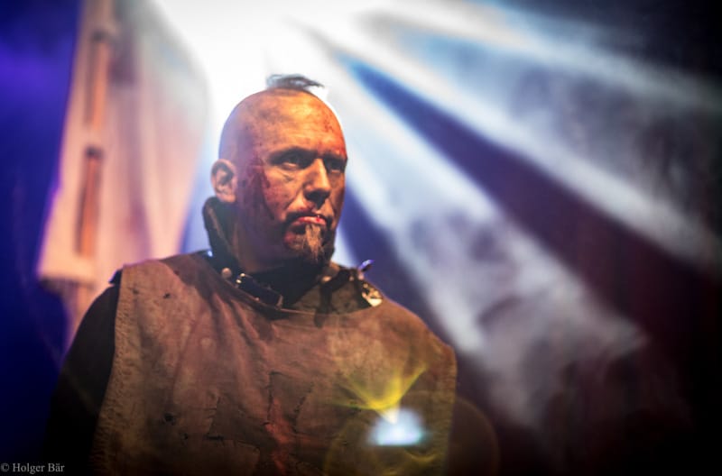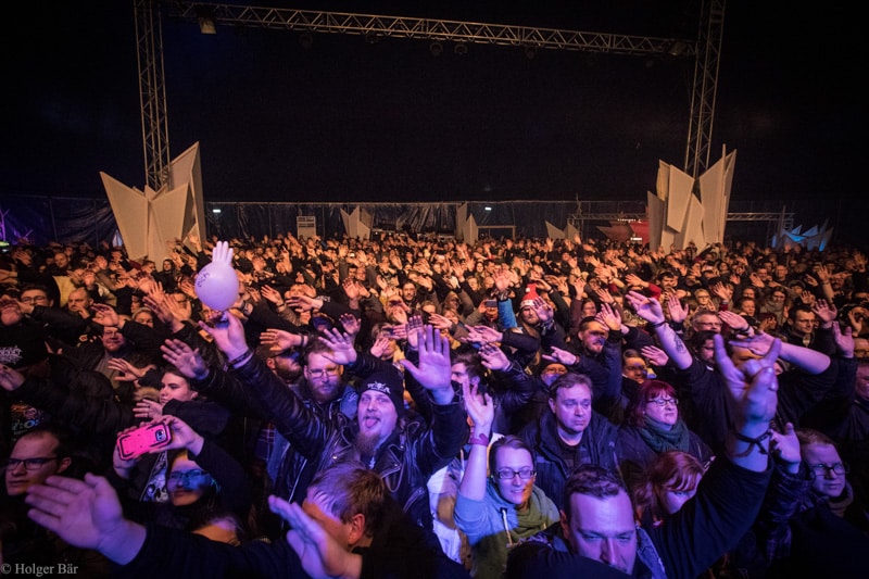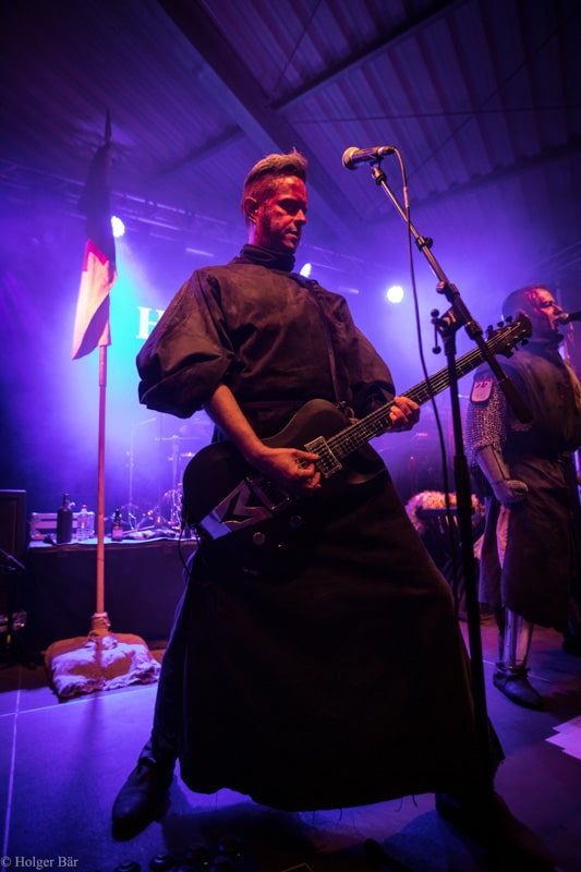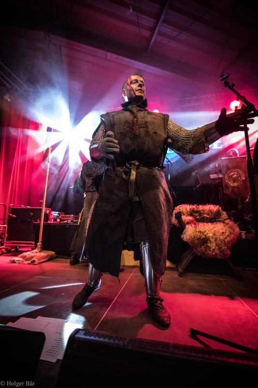 Dennoch fällt unsere Wahl wieder auf die kleine Bühne im „Theatre Of Grace“, wo die Tempelritter Einzug halten. HEIMATAERDE beenden den Tag mit ihrer extrovertierten Mischung aus EBM und Mittelalter, gepaart mit blutigen Showelementen. Düster, doch zeitgleich mit einem selbstironischen Humor („Wir sind die Scooter der Schwarzen Szene!“) spielen sich die Templer damit schnell in die Herzen der Zuschauer und lassen den Nordwind, der um solch späte Stunde ums Gelände fegt, gleich einige Grad wärmer erscheinen.