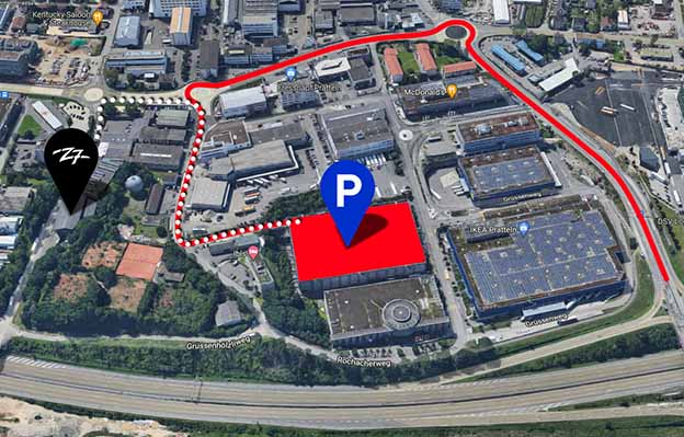 - Uns steht ausschliesslich das Parkdeck und nicht die Tiefgarage des Grüssen-Centers zur Verfügung.