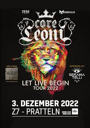 «LET LIFE BEGIN» TOUR 2022Sie sind eine der passioniertesten Hommagen an den klassischen Hard Rock, die sich in den letzten Jahren hervorgetan hat: CoreLeoni. Im Zentrum der Formation schlägt wortwörtlich das musikalische (Löwen-)Herz von Gitarren-Ikone und Gotthard-Gründungsmitglied Leo Leoni. 2018 überraschte die Band die Rockgemeinde mit ihrem gefühlt über Nacht erschienenen «The Greatest Hits, Part 1». Das Album, das alte Gotthard-Klassiker – und mit ihnen den Spirit der damaligen Zeit – neu aufleben liess, sorgte für ordentlich Furore. Am 13. Mai 2022 erschien das dritte Werk von CoreLeoni. Wie kaum ein anderer Act zelebrieren die Tessiner auf insgesamt zehn brandneuen Tracks den Herzschlag des erdigen Classic Rock.Special Guest: Seraina TelliLocation: Z7, Pratteln